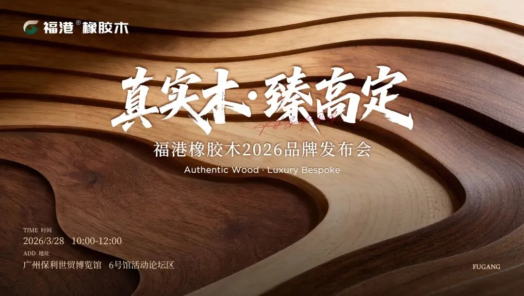 福港橡胶木2026 发布会(10:00-12:00),聚行业协会、国际代表等嘉宾,借品牌战略发布、新品亮相,结合颁奖授牌、高铁签约等环节,既展现企业实力,更搭建行业交流平台,助力橡胶木产业升级,引领家装实木应用新趋势。