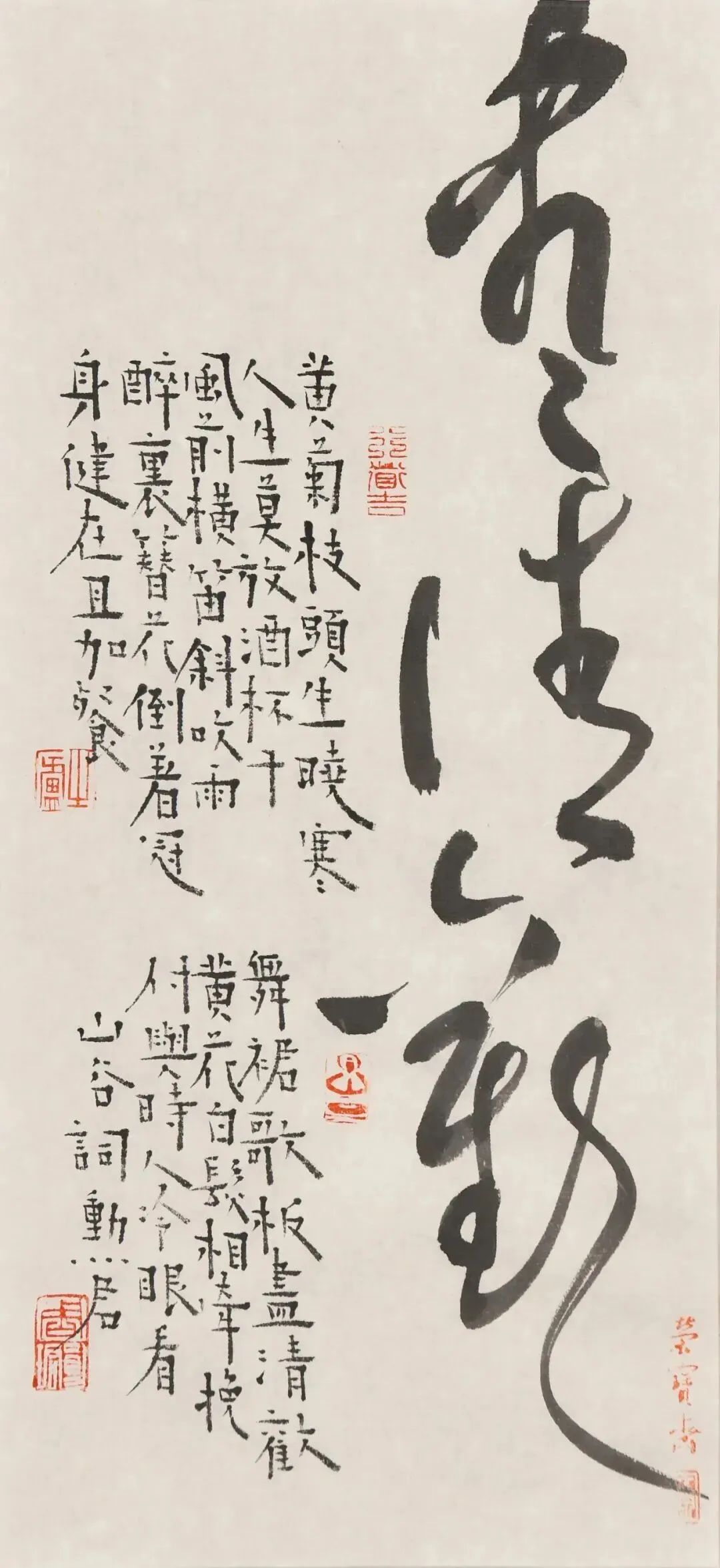 尽清欢。黄菊枝头生晓寒,人生莫放酒杯干。风前横笛斜吹雨,醉里簪花倒著冠。身健在,且加餐。舞裙歌板尽清欢。黄花白发相牵挽,付与时人冷眼看。山谷词。勋君