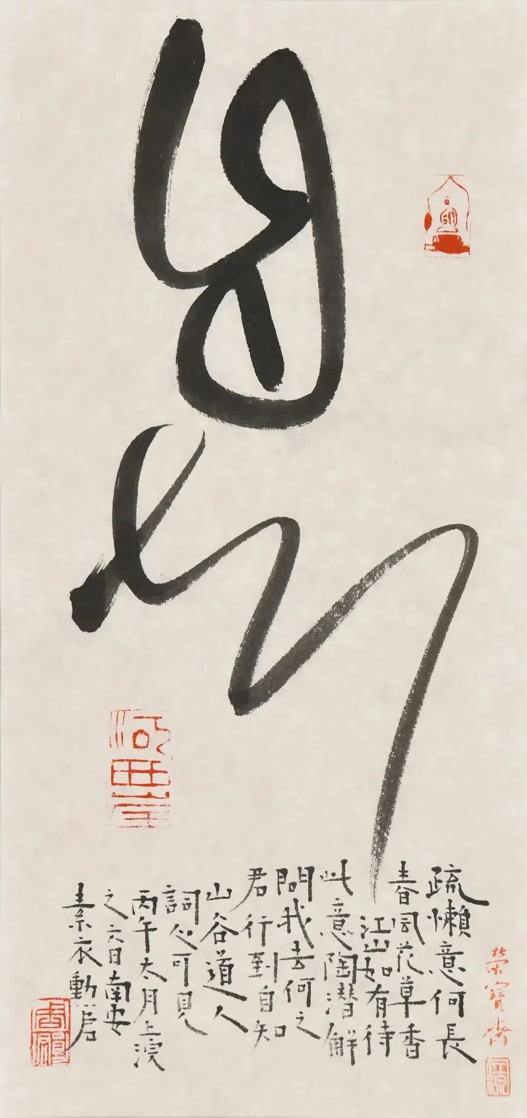 自知。疏懒意何长,春风花草香。江山如有待,此意陶潜解。问我去何之,君行到自知。山谷道人词心可见。丙午太月上浣之六日,南安素衣勋君。