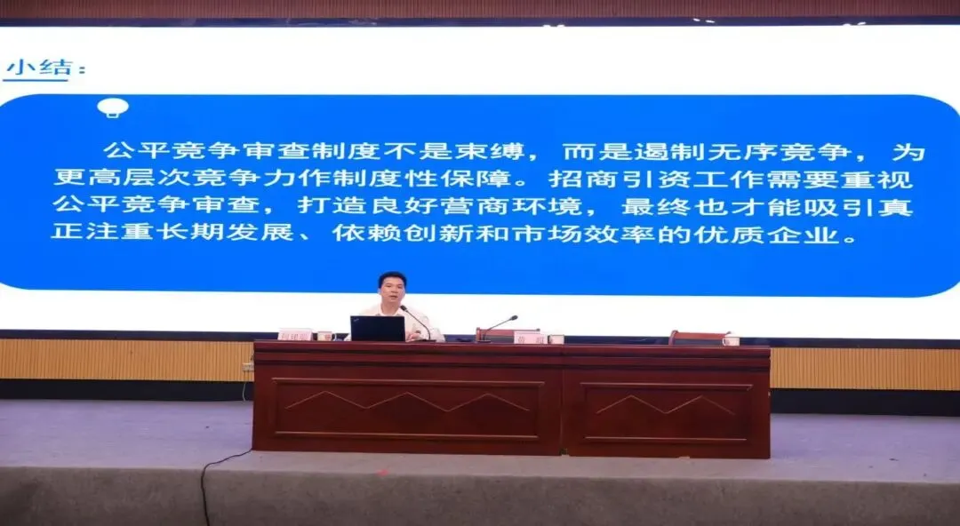 本次培训会邀请了市市场监管局公平竞争审查专家何建聪同志作专题授课。作为全国公平竞争审查研究骨干专家,何建聪结合典型案例,深入解析了招商引资工作中的合规风险点,包括政策适用、合同签订、资金使用等核心内容,明确了禁止性条款与合规操作规范。他还分享了招商引资在模式创新、业态创新、服务创新方面的实践经验,探讨了新形势下新型招商方式的应用路径。在互动交流环节,参会人员围绕实际工作中遇到的合规难题、创新瓶颈等踊跃提问,专家现场答疑指导,现场气氛热烈。