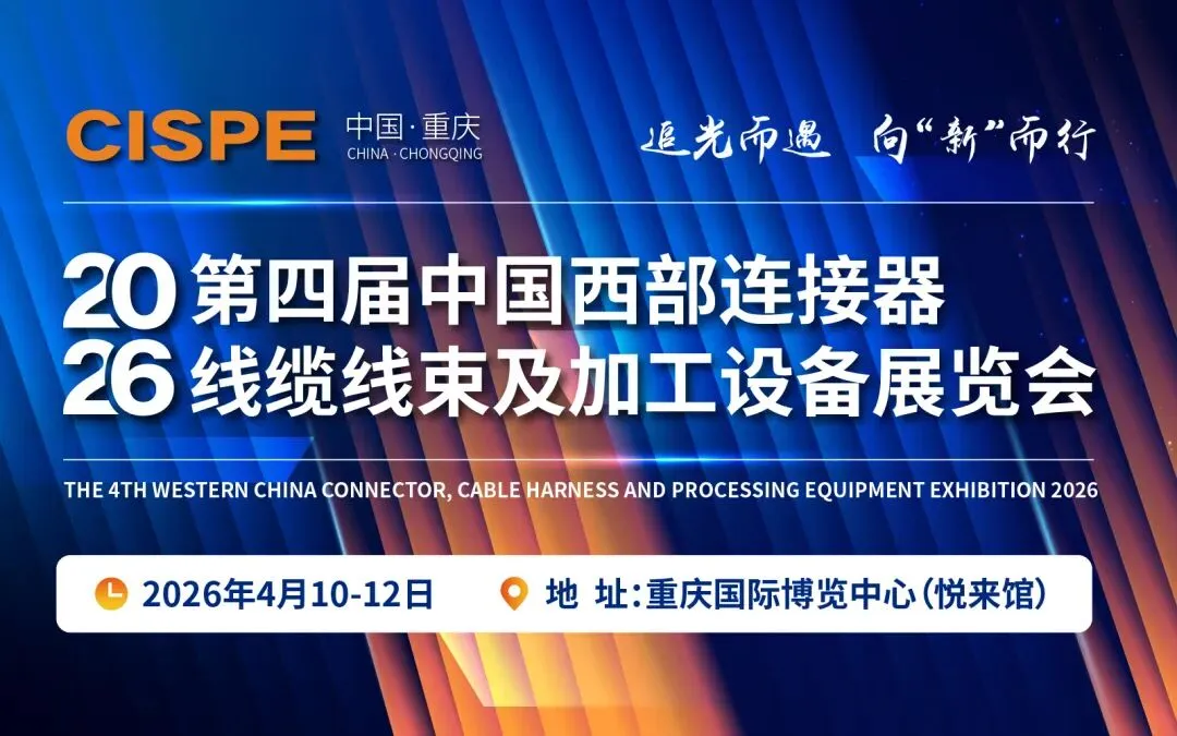 第四届中国西部连接器、线缆线束及加工设备展览会定于2026年4月10-12日在中国重庆国际博览中心举办,预计展出面积35000平方米,将邀请国内外700多家品牌企业参展和25000多名专业观众到场参观交流、贸易采购,200多家国内外权威媒体对展会进行宣传报道。全方位聚焦线缆线束行业,搭建行业供给与需求、创新与发展的专业交流平台。