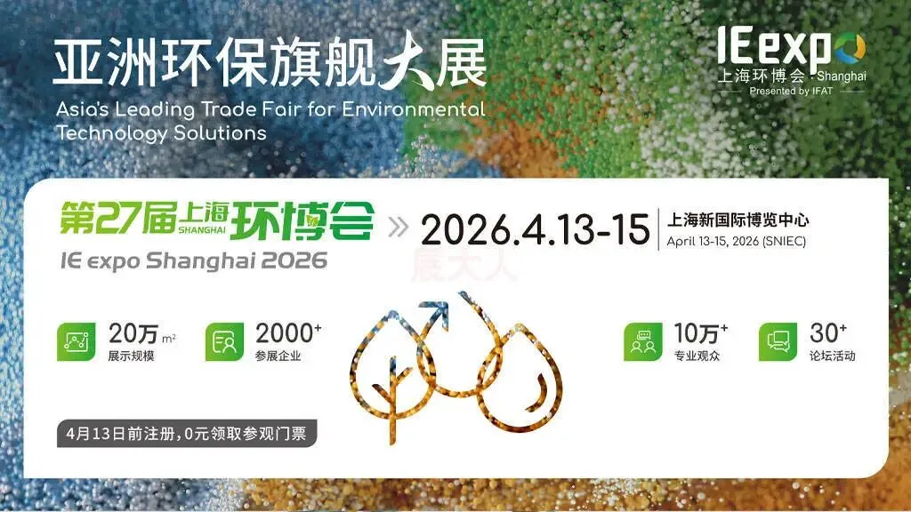作为仅次于母展IFAT展的全球第二大环保展,第27届上海国际环博会IEexpo Shanghai2026将于4月13-15日在上海新国际博览中心盛大举办!