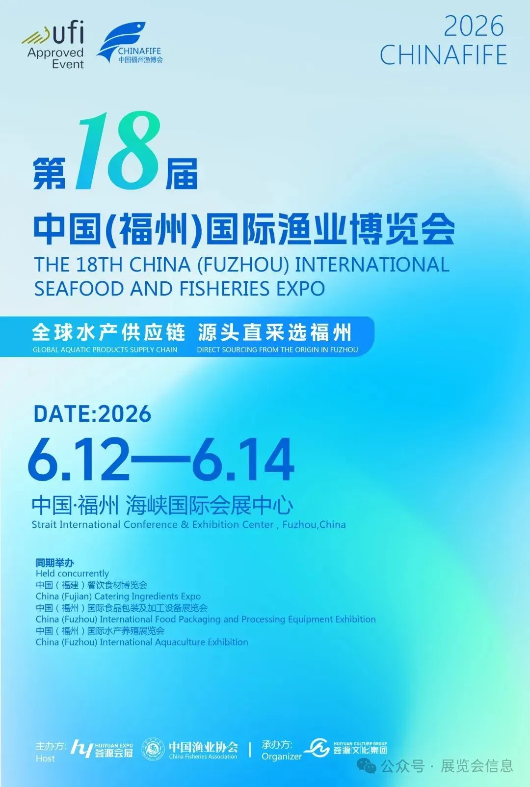 2026年福州国际渔业博览会(简称“福州渔博会”),将于6月12-14日在福州海峡国际会展中心隆重举办。作为国家商务部批准的全国首个国际渔业专业展会,同时也是经UFI认证的国际品牌展会,本届渔博会由中国渔业协会、福建荟源国际展览有限公司主办,秉承“全球水产供应链 源头直采选福州”的核心主题,立足榕城福州的产业腹地,面向全球市场,积极搭建渔业产经合作与技术交流的高端桥梁,助力行业高质量发展。