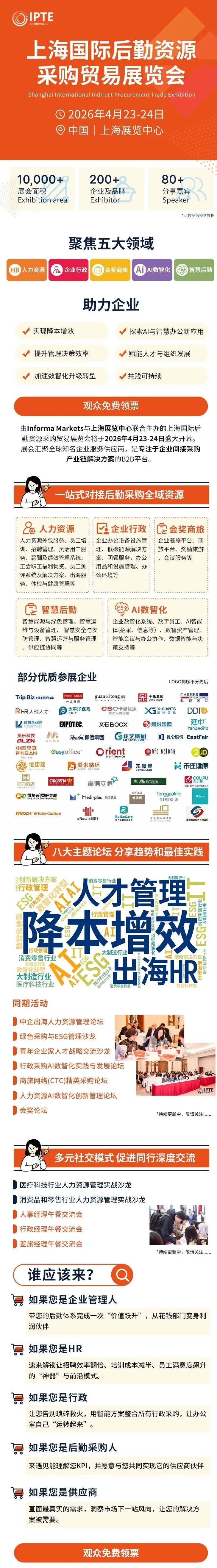 由Informa Markets与上海展览中心联合主办的上海国际后勤资源采购贸易展览会将于2026年4月23-24日盛大开幕。展会汇聚全球领先企业服务供应商,是专注于企业间接采购产业链解决方案的B2B平台。