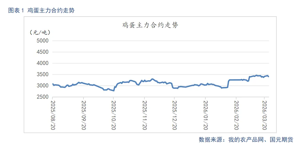 供应端上,2025年四季度鸡苗补栏偏少的影响持续兑现,二季度初期新开产蛋鸡数量缩减。不过养殖端压栏观望情绪浓厚,淘汰积极性不足。叠加26年一季度,鸡苗补栏情绪尚可,预示二季度中后期新开产产能将逐步回升,为二季度中后期埋下供应增量隐患。当前产蛋鸡存栏虽呈下行趋势,但前期存栏基数偏高,二季度整体延续宽松看待。需求端受节日效应驱动,二季度涵盖清明、五一假期,节日需求提振下,蛋价将迎来阶段性上行窗口。但节日利好消退后,加之梅雨季将临,终端需求大概率回落。且猪肉价格上半年偏弱运行,鸡蛋替代需求增量有限,难以支撑蛋价持续大幅上涨。成本端上,中东地缘局势扰动带动玉米、豆粕等饲料原料价格联动上行,养殖端挺价情绪升温,限制蛋价下行空间。预计二季度饲料成本支撑仍将持续作用于蛋价中枢。综合来看,现货市场受节日提振,4-5月震荡上行,6月随需求回落回调。盘面受现货短期偏强带动,近月合约跟涨空间有限,远月合约则需警惕需求回落与供应后置风险,维持区间震荡看待,震荡下沿受成本支撑抬升。后续需持续跟踪产能调控进度,若产能去化加速,将推动蛋价向成本线以上回升,反之则压制上行空间。