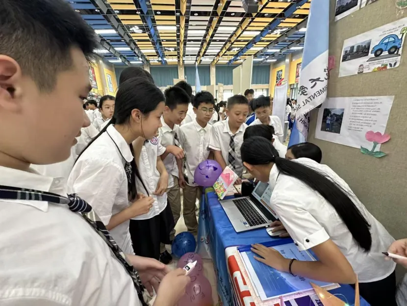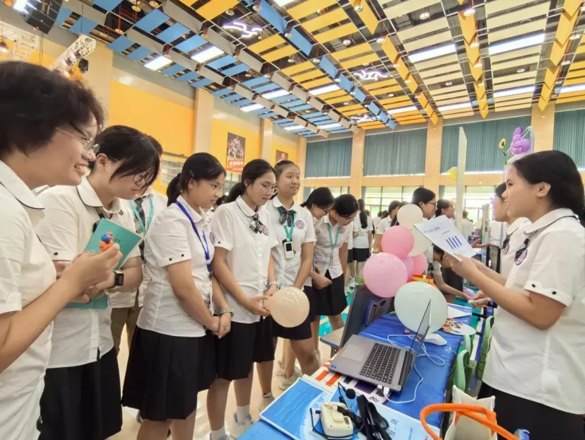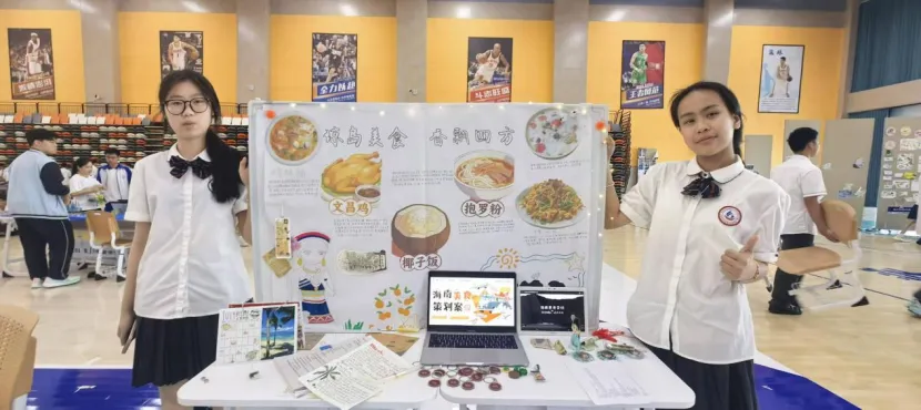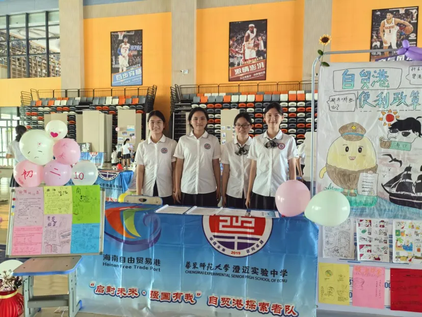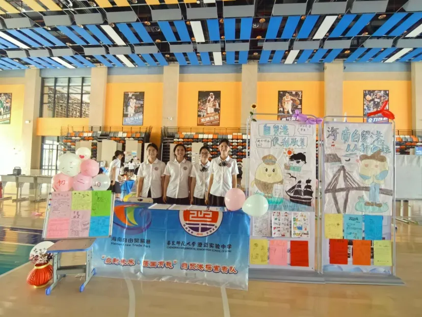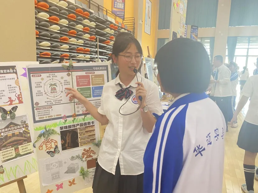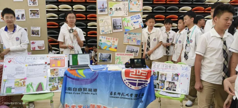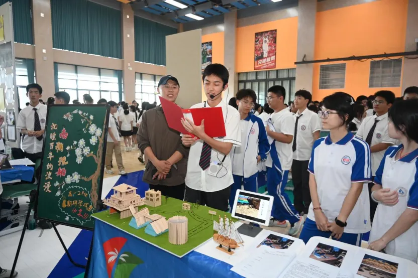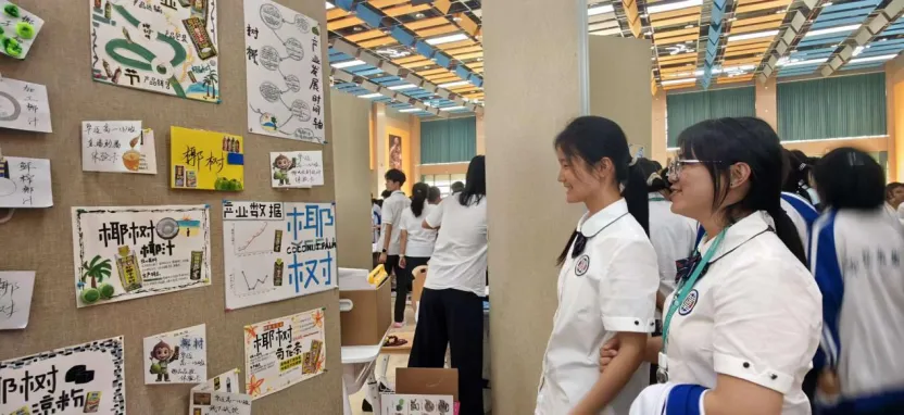 初一年级的展台上,一张张稚嫩却坚定的脸庞,讲述着他们对家乡微变化的细腻观察;初二年级则通过一幅幅手绘作品和创意海报,展现了他们对自贸港规则的深刻理解;高一年级则以详实的数据图表和调研报告,剖析了本土产业的发展现状;而高二年级,则用一件件青春创意设计作品,诠释了他们对未来的无限憧憬。