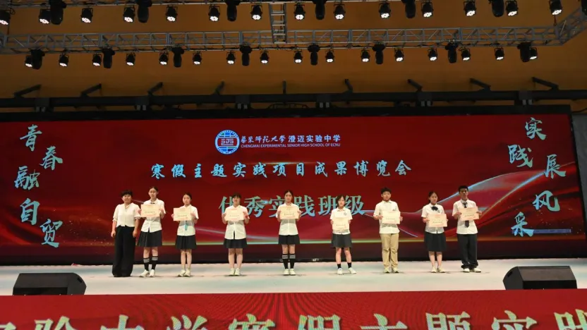 经过各学年的精心评选,初一9班、初二10班、高一9班和高二2班脱颖而出,成为各年级的优秀代表。他们站在主舞台上,用更加精炼的语言和更加生动的展示形式,向全校师生分享了他们的实践感悟与成果。