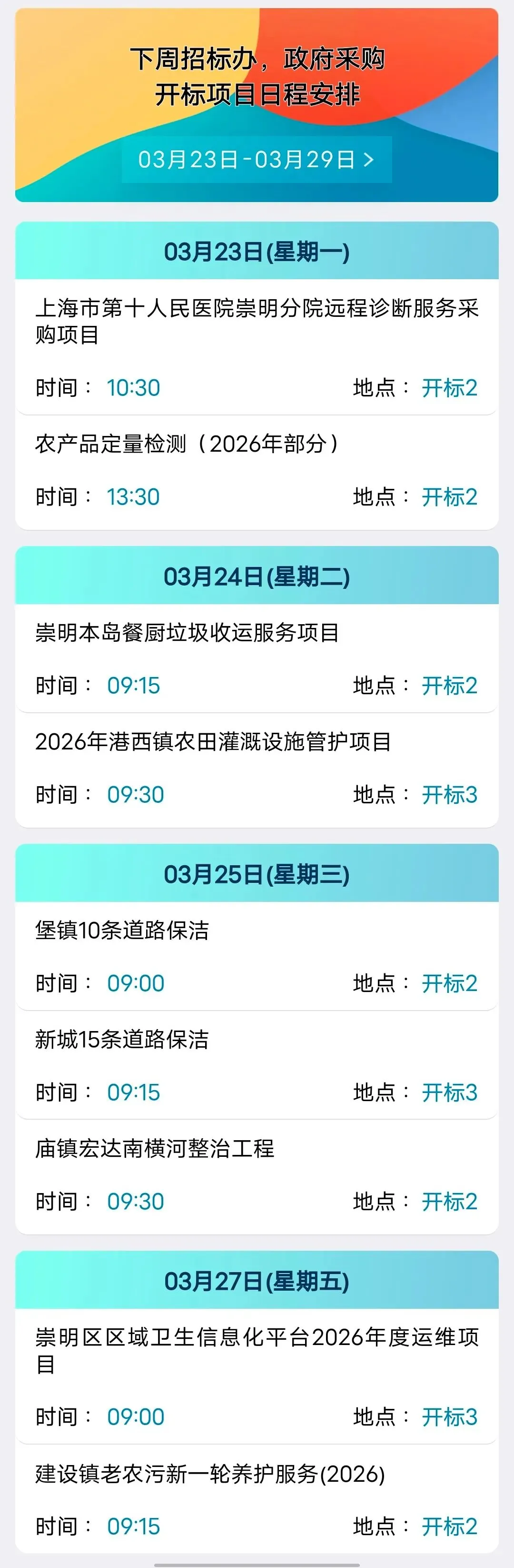 【日程安排】下周招标办、政府采购开标项目日程安排(3月23日-3月29日)
