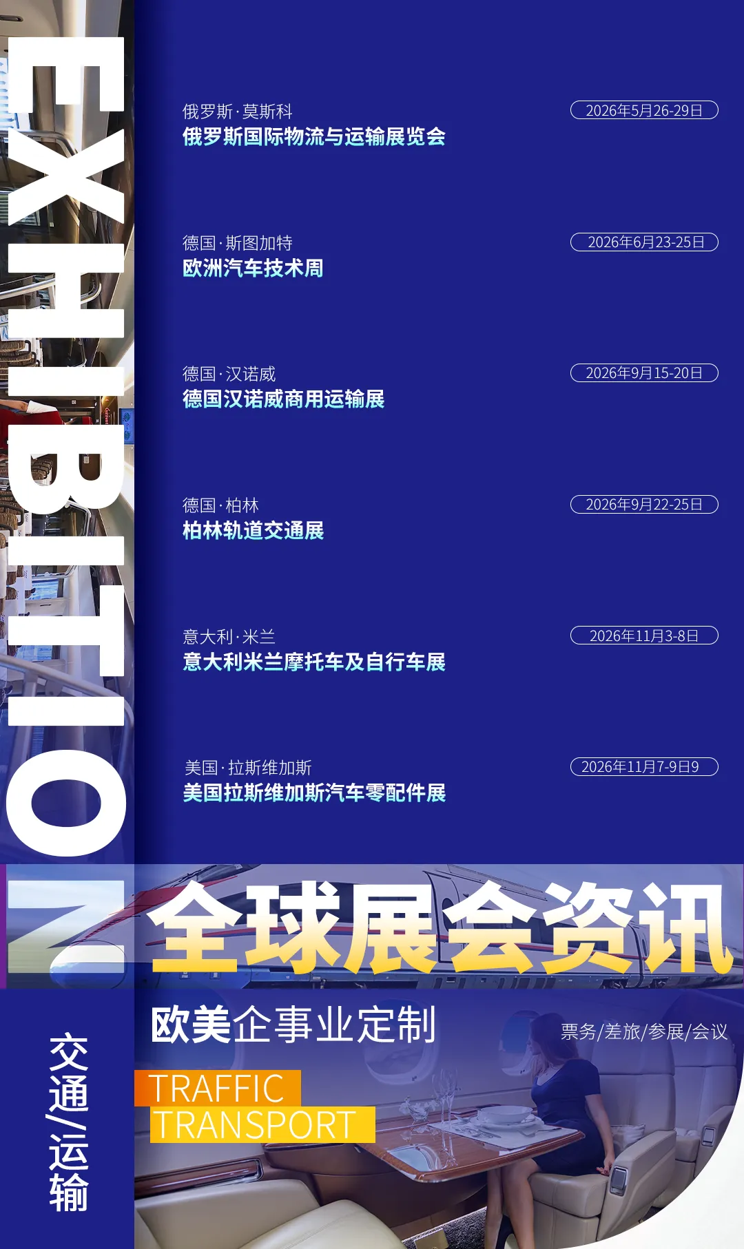 提供从豪华大巴到高端商务车的多车型选择,配备熟悉当地路况及展馆路线的专业司机,保障人员和展品准时抵达。