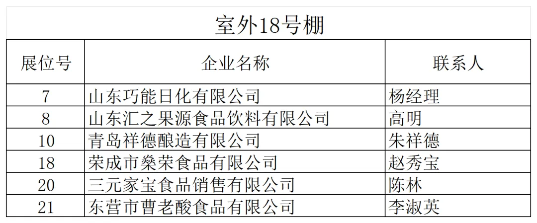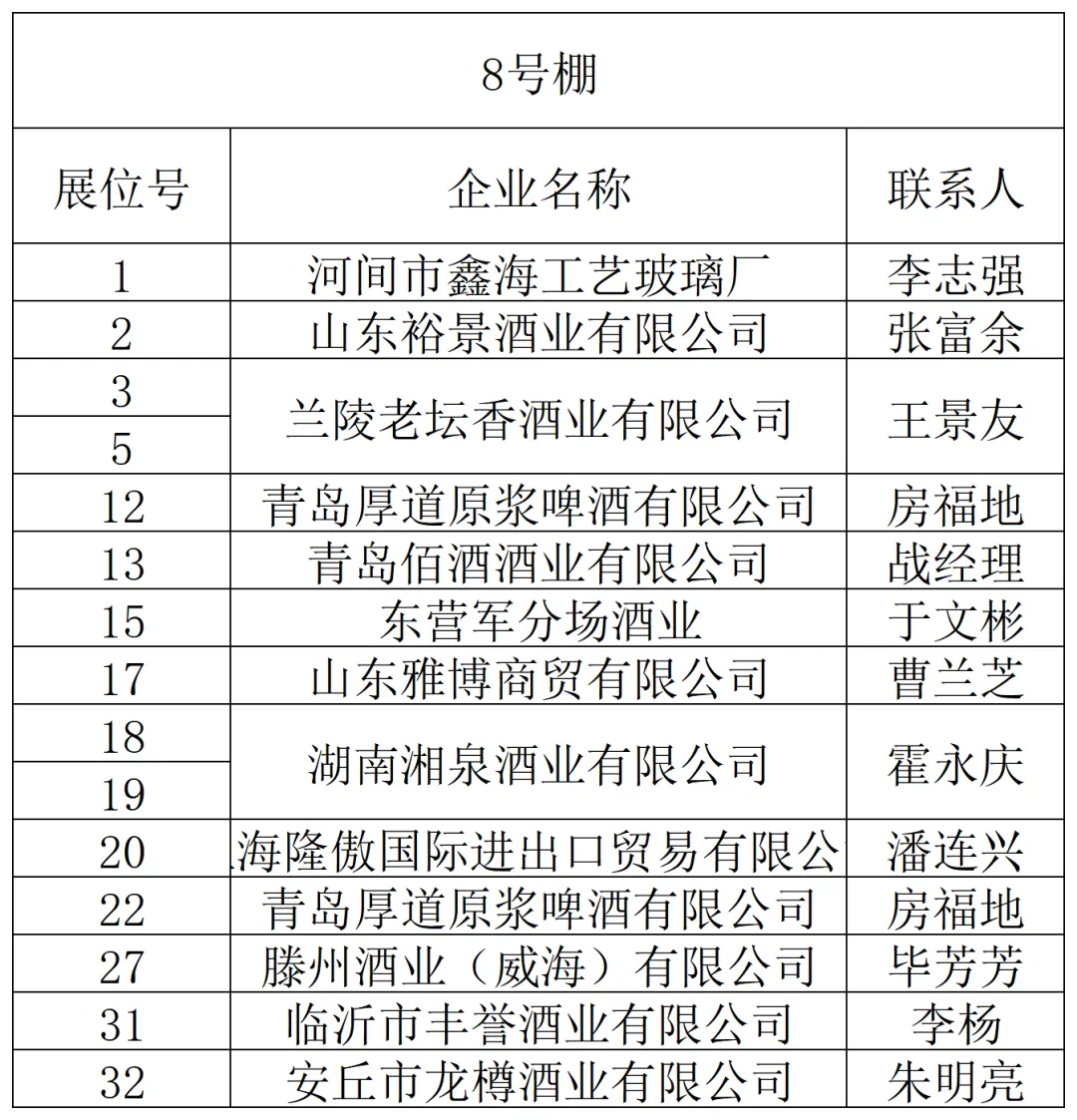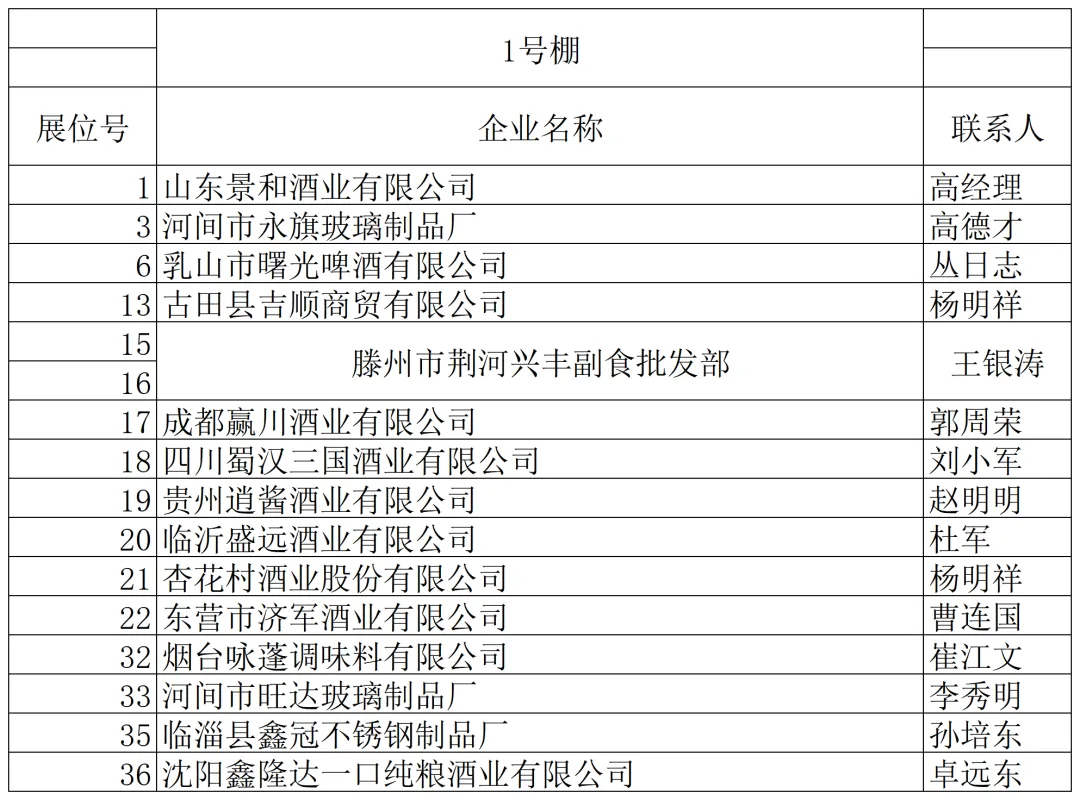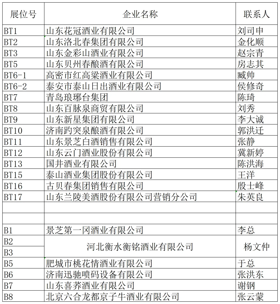 山东省外名优酒企如金酱、金沙古酒、双沟、山西汾酒、北京二锅头等纷纷抢先入驻。金保罗、椰风、南海绿源、金芒果、豆黄金、好妈炖、唐山鼎盛、旺仔等众多食品饮料企业也纷至沓来。新大印刷、临沂永华、钻石包装、红椿树包装、米奇等包装企业,崂特、月夜狼、崂城、崂世家等精酿啤酒企业如约而至,静待八方客商。