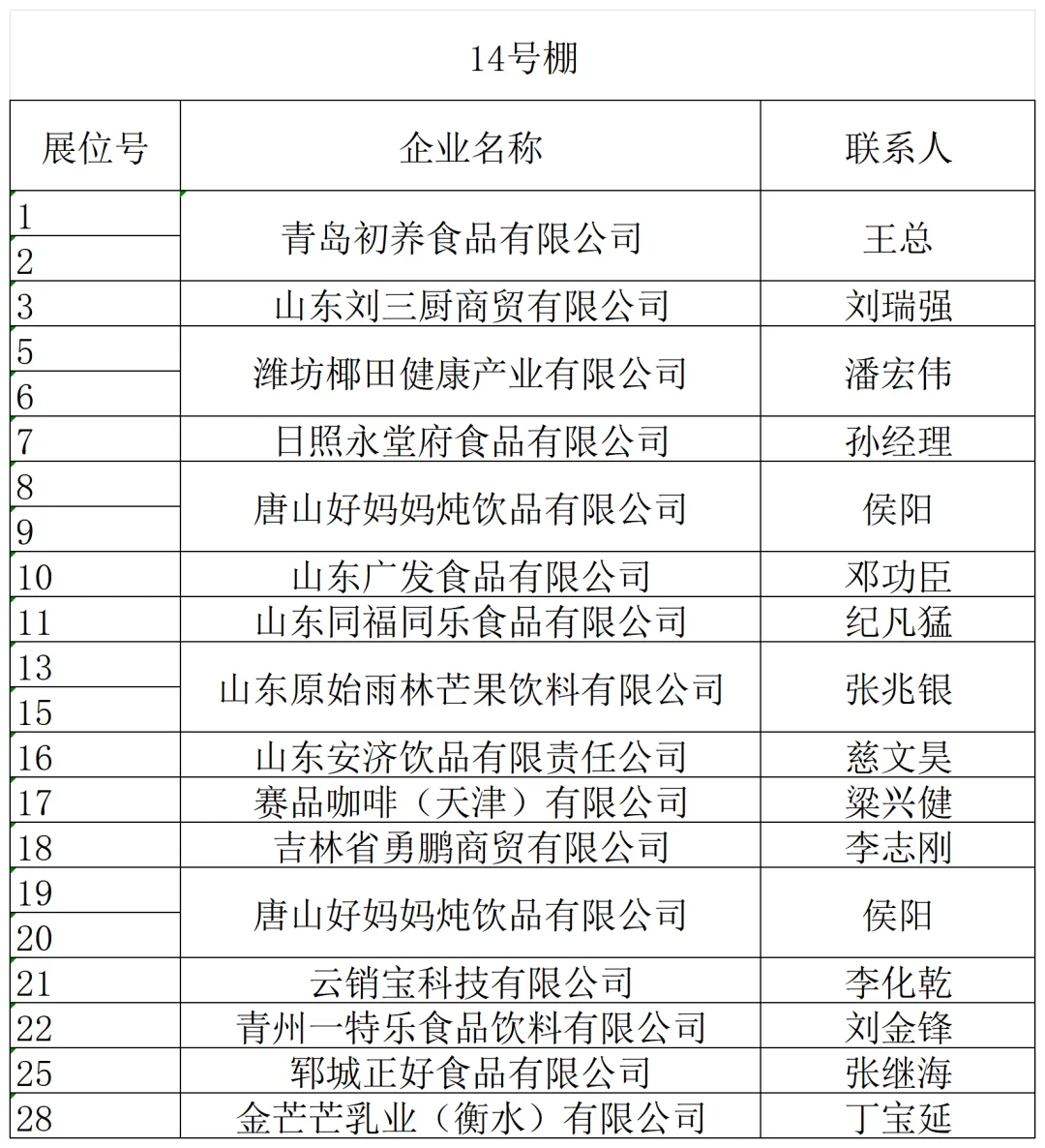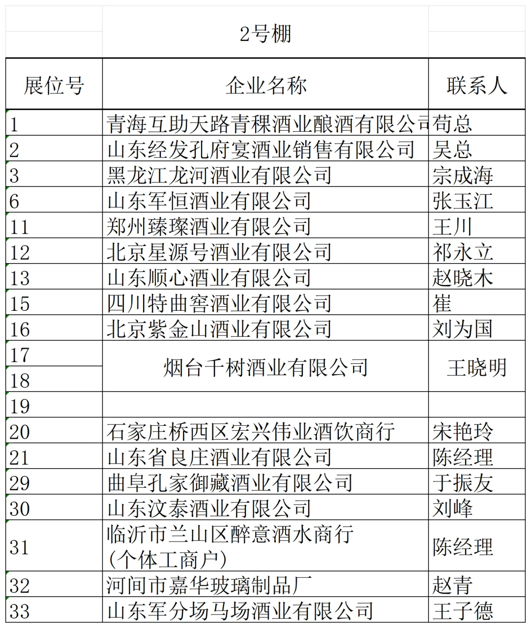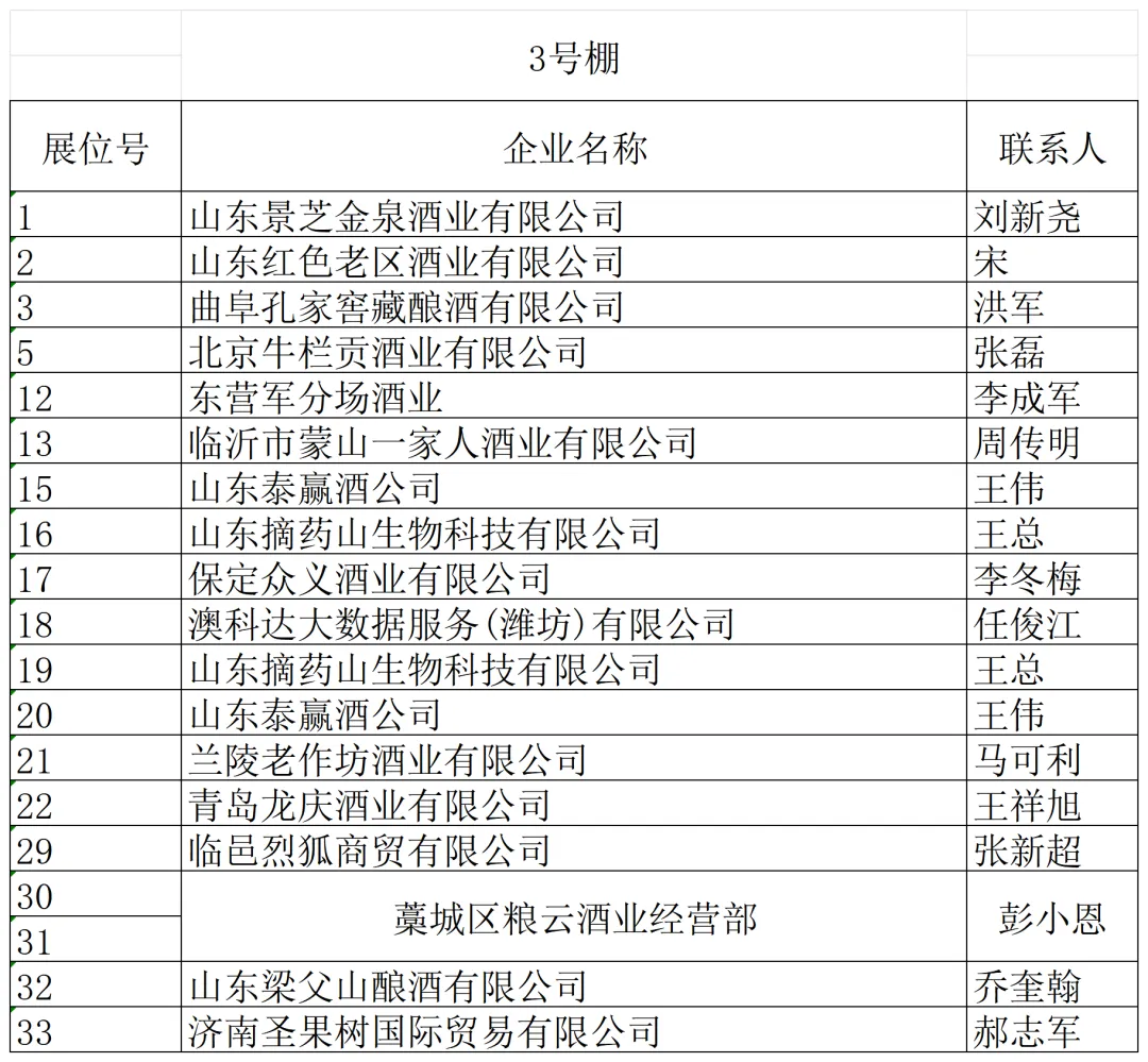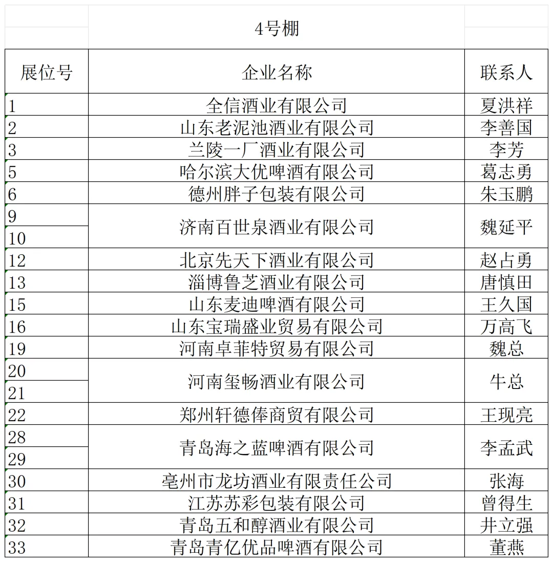 山东省外名优酒企如金酱、金沙古酒、双沟、山西汾酒、北京二锅头等纷纷抢先入驻。金保罗、椰风、南海绿源、金芒果、豆黄金、好妈炖、唐山鼎盛、旺仔等众多食品饮料企业也纷至沓来。新大印刷、临沂永华、钻石包装、红椿树包装、米奇等包装企业,崂特、月夜狼、崂城、崂世家等精酿啤酒企业如约而至,静待八方客商。