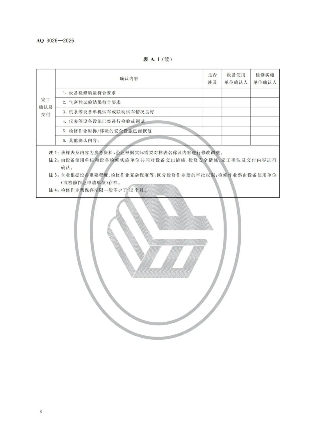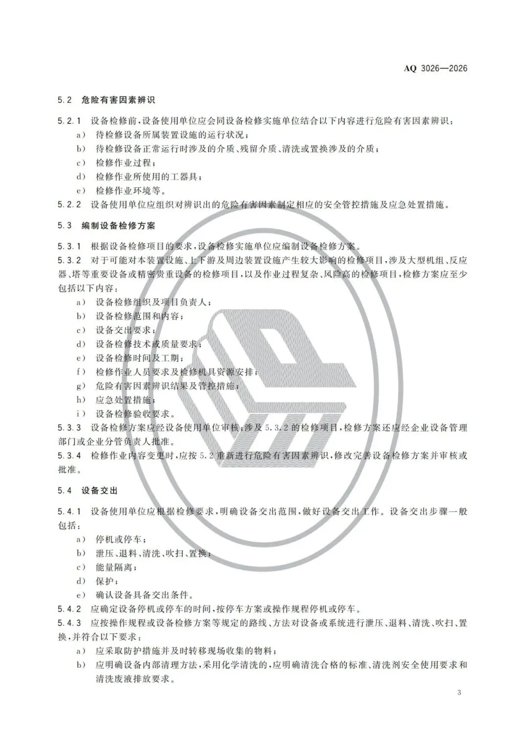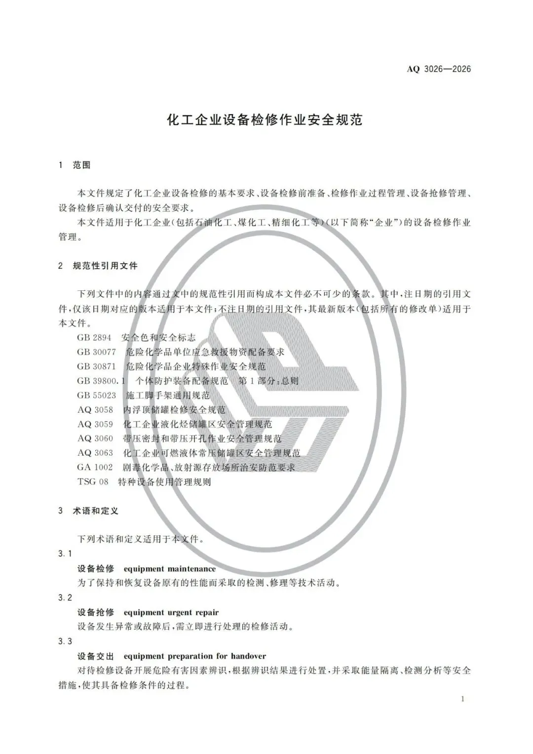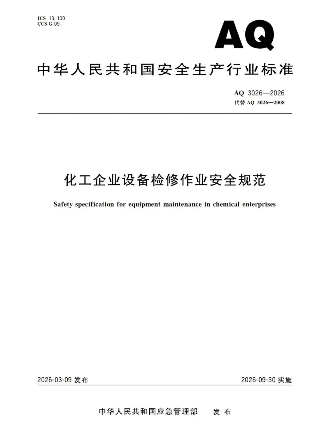【行业标准】AQ3026-2026化工企业设备检修作业安全规范