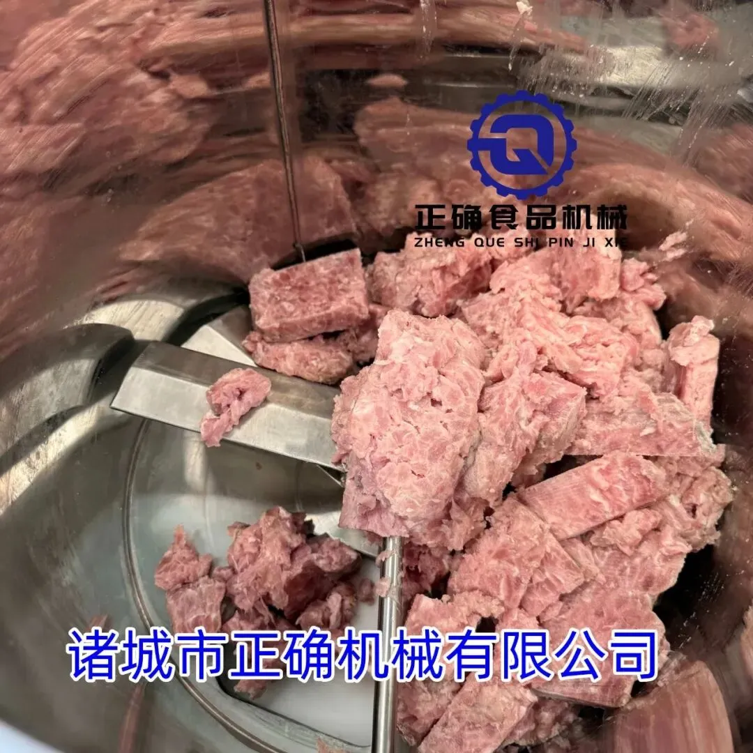 肉饼制作工序首先肉馅调过味道后进行打浆是快速将调味料和肉馅加上其他辅料搅拌均匀还增加弹性,保水效果好,制作后的馅再投入成型机内,经过桶内搅拌推料,与模型配合再用切割线切出来厚度统一大小一致的肉饼。