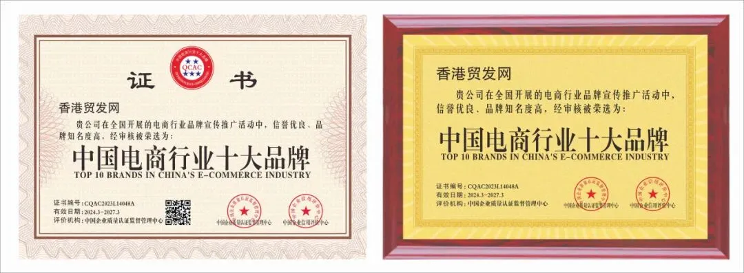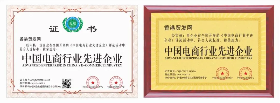 香港贸发网凭借卓越的服务品质和业界影响力,在2024年荣获由中国企业质量认证监督管理中心颁发的两大殊荣: