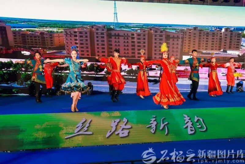 3月27日,第七届新疆春季旅游博览会现场的歌舞表演。石榴云/新疆日报记者 阿比拜 摄