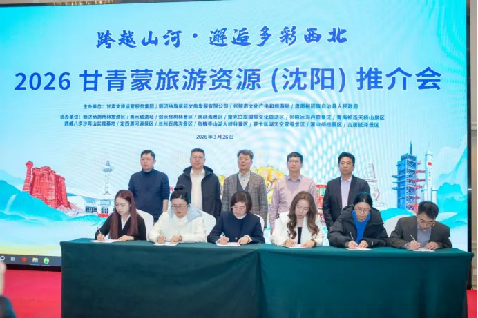 3月26日,以“三千年的守望 只为你的到来”为主题,由甘肃文旅运营服务集团有限公司、额济纳旗居延文旅发展有限公司、肃南裕固族自治县人民政府、张掖市文化广电和旅游局联合主办的“跨越山河·邂逅多彩西北”2026甘青蒙旅游资源推介会在沈阳圆满落幕。本次推介会旨在搭建跨区域文旅交流桥梁,进一步开拓东北客源市场,深化甘青蒙与辽宁及东北地区的文旅交流与产业协作。