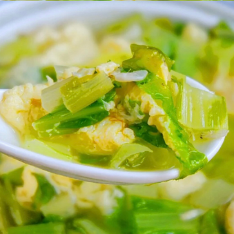 豆腐丸子、小白菜鸡蛋汤