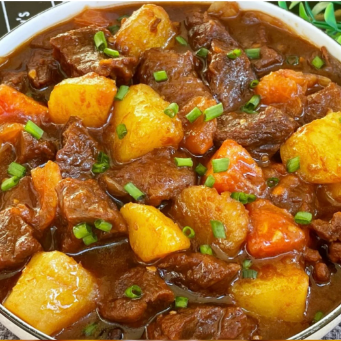 珍珠米饭、土豆南瓜炖牛肉