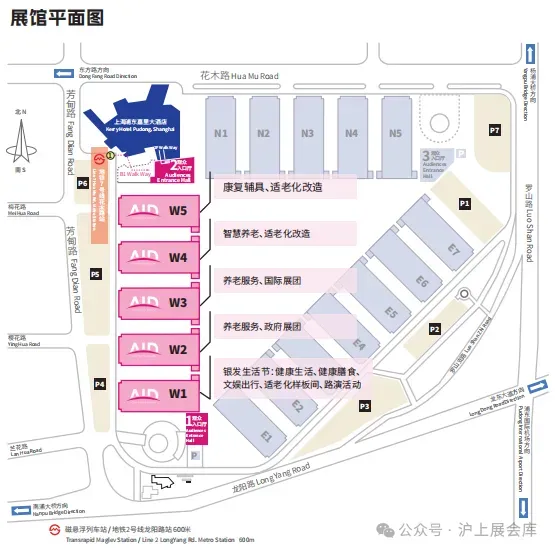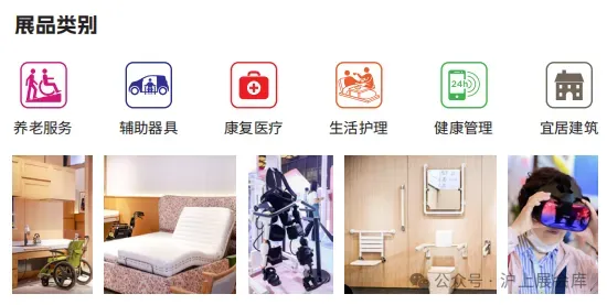 养老服务展区:养老机构、社区机构、金融养老服务、适老化设计、机构运营,位于 W3 馆、W2 馆;