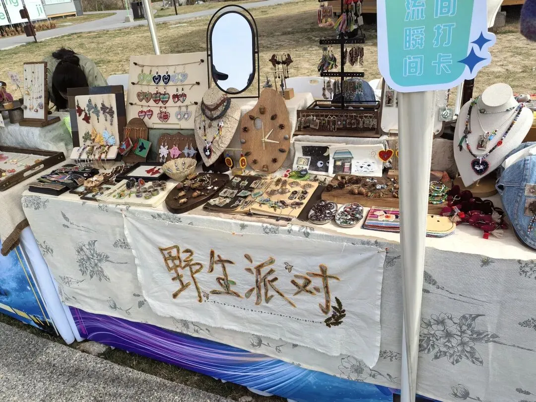 到了以后先领一下盖章打卡的册子。可能是第一天,我们去的时候有些摊位还空着。请仔细逛一下摊位,有一个跟AI有关的可以幸运获得赠品手机链等。