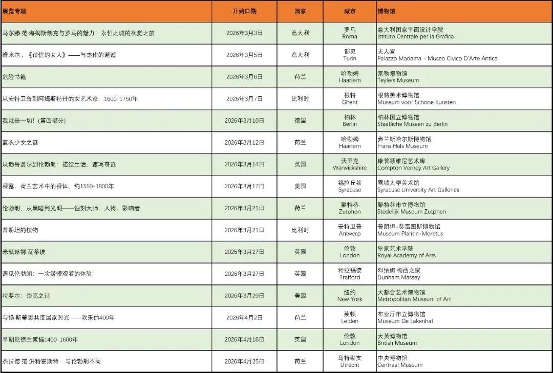 尼德兰艺术展览推荐(2026年3月期)