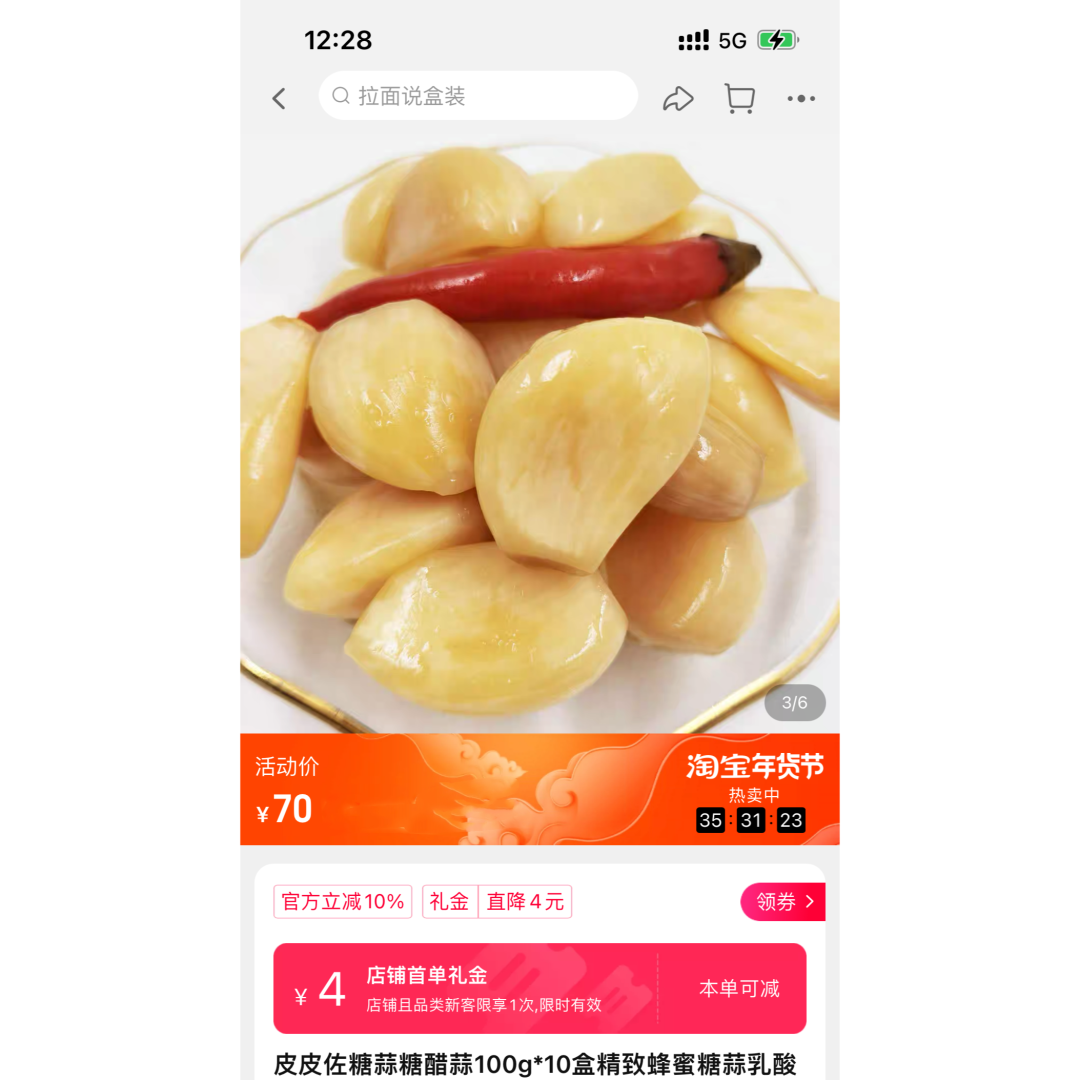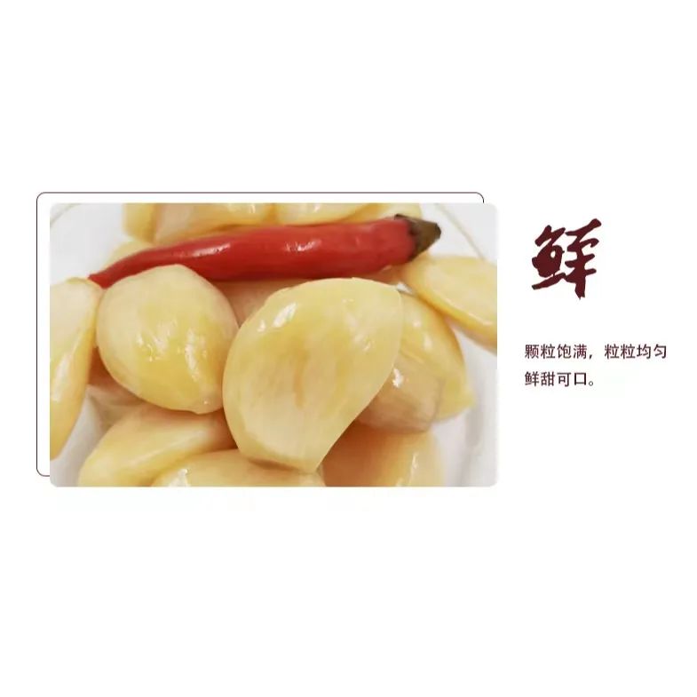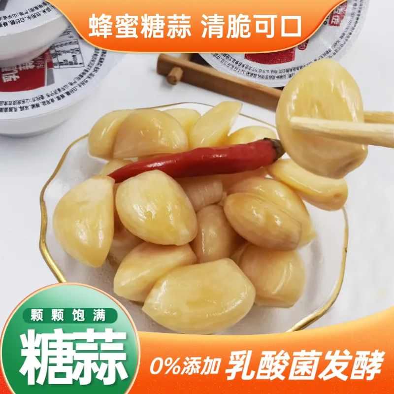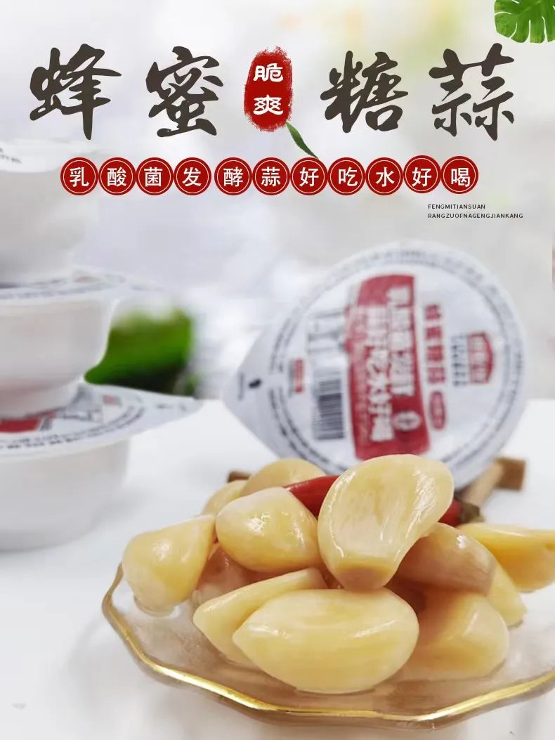 【产品介绍】:科学配方低脂0食品添加剂,不添加防腐剂,不添加香味剂,不添加,不添加辣椒精,可具有免疫力,杀菌抑菌消炎抵抗病毒,不留口气,想吃就吃的糖蒜;独立包装,一顿饭一罐,健康卫生,携盒装,解辣、解腻、解腥、清口;甄选2000余年大蒜种植历史的山东金乡四六大蒜,蒜头个大,汁鲜味浓,香脆可口,含有人体所需的20多种营养元素,被专家成为良好的天然抗生素食品和保健食品。