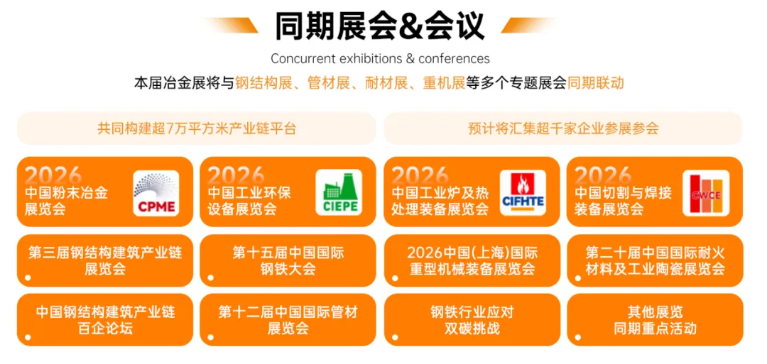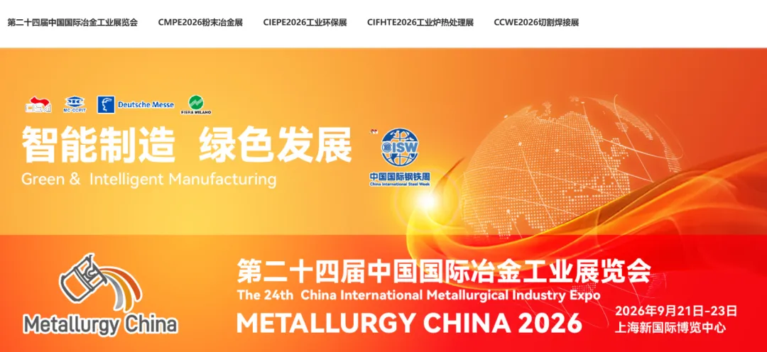 全球冶金行业最具影响力的两大展会”之一!将于2026年9月21-23日在上海新国际博览中心举行,这是一个为满足中国冶金市场最新需求而度身定做的展览。由中国钢铁工业协会和中国贸促会冶金行业分会共同主办,中国国际冶金工业展览会始于1987年,英文简称Metallurgy China。主办方中国钢铁工业协会及中国国际贸易促进委员会冶金行业分会将“不断提高中国钢铁工业在国内外市场竞争力,促进中国钢铁工业发展”为办展宗旨,秉持专业性以及为展商服务、为行业服务、为市场服务的核心理念,将展会打造成为促进中国冶金产品、设备及技术推广、市场开拓及投资并购的国际化领先平台。