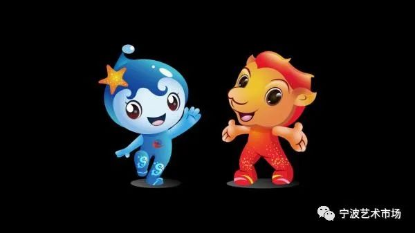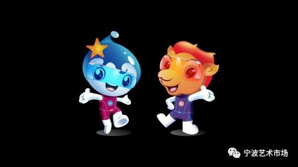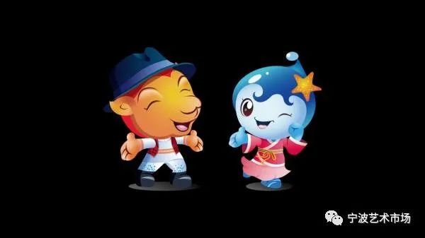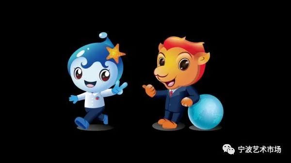 海娃,头系小海星,脚踏波浪,长得像一颗小水滴,主色调为海蓝,象征“一路”——海上丝绸之路和宁波港城特色。