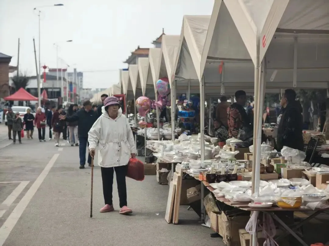 本次庙会精心规划九大功能区,农特产品、特色小吃、日用百货、文艺表演一应俱全,吃喝玩乐购一站式搞定,逛一天都不重样!为了让商户安心经营、群众舒心游玩,镇政府推出暖心惠民政策:统一搭建带顶棚的标准化摊位,所有摊位全程免费,专人负责打扫维护卫生,集市整整齐齐、干干净净,商户们不用愁成本、不用愁环境,只管安心做生意。现场还有专属打卡点、用工招聘、志愿帮扶等贴心服务,热闹的烟火气里,满是暖暖的民生温度。