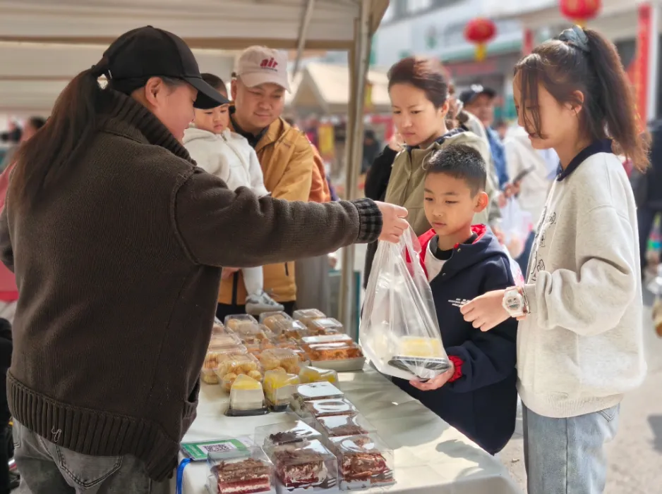 逛庙会、品美食、购好物、享童趣,集市内处处洋溢着热闹氛围。特色小吃香气扑鼻,农货百货琳琅满目,游乐区里亲子同乐、欢声笑语。靠着政府免摊位费的好政策,村里来摆摊的乡亲们零成本做生意,自家的农货、小吃格外抢手,个个都挣上了钱,脸上笑开了花。这场盛会不光带火了乡村消费,更让泥屯的优质农产品走出家门,打响了名气。