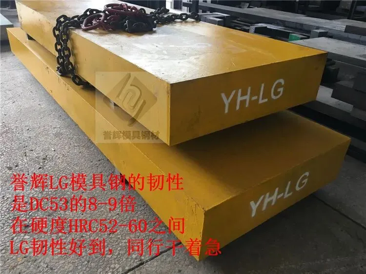 LG模具钢是一种高硬度、高韧性的多用途模具钢。衡量韧性的关键指标是无缺口冲击功,LG模具钢在硬度HRC57–58时,冲击功值可达290焦耳以上;而DC53在硬度HRC57–61时,冲击功值约为33焦耳。由此可见,LG模具钢的韧性是DC53的8–9倍。实际应用也证明,LG模具钢在韧性、硬度和刚性方面均优于VIKING,能够有效解决连接器和PC等塑胶模具中细长小芯子的弯曲与断裂问题。