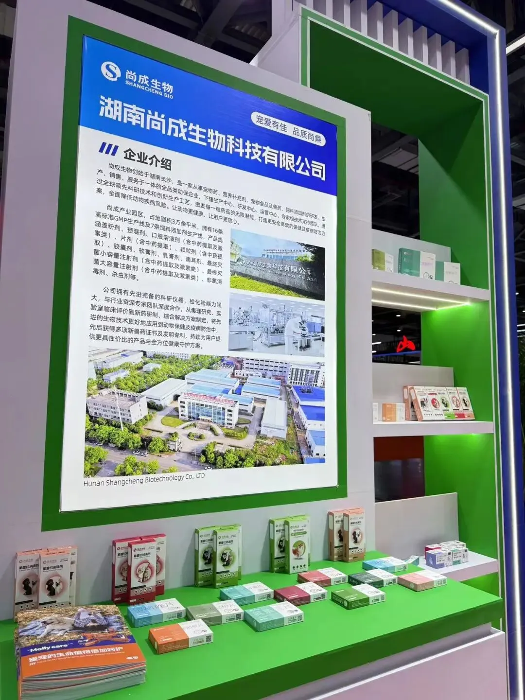 作为湖南兽药企业宠物药转型升级的优秀代表,湖南尚成生物在展会上备受瞩目。目前,尚成生物已成功获得匹莫苯丹、匹莫苯丹咀嚼片两项新兽药证书,并获得“国家高新技术企业”及“专精特新”认证,在全国设有北京、青岛、成都、长沙四大研发中心,研发实力不容小觑,拥有16条高标准GMP生产线及7条宠物营养补充剂生产线。更值得期待的是,预计2025年底还将有氟雷拉纳、枸橼酸马罗匹坦等2-3项新兽药证书获批。在研发布局上,尚成生物已立项30余项宠物新药研发,持续为市场输送创新产品,有望在全球宠物药市场中占据重要地位。
