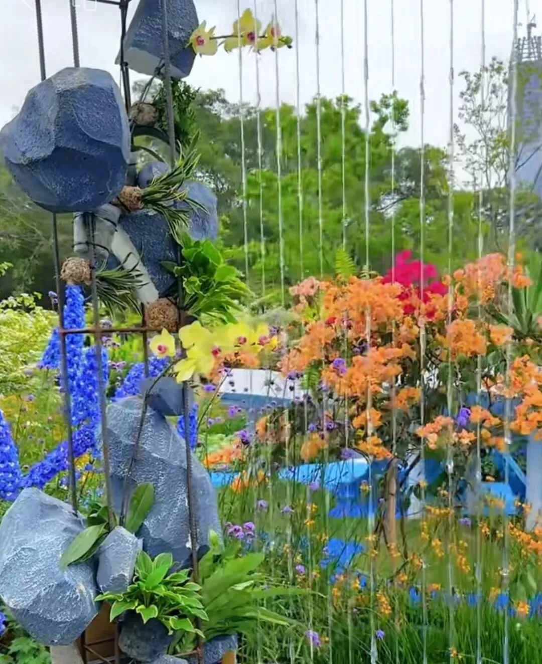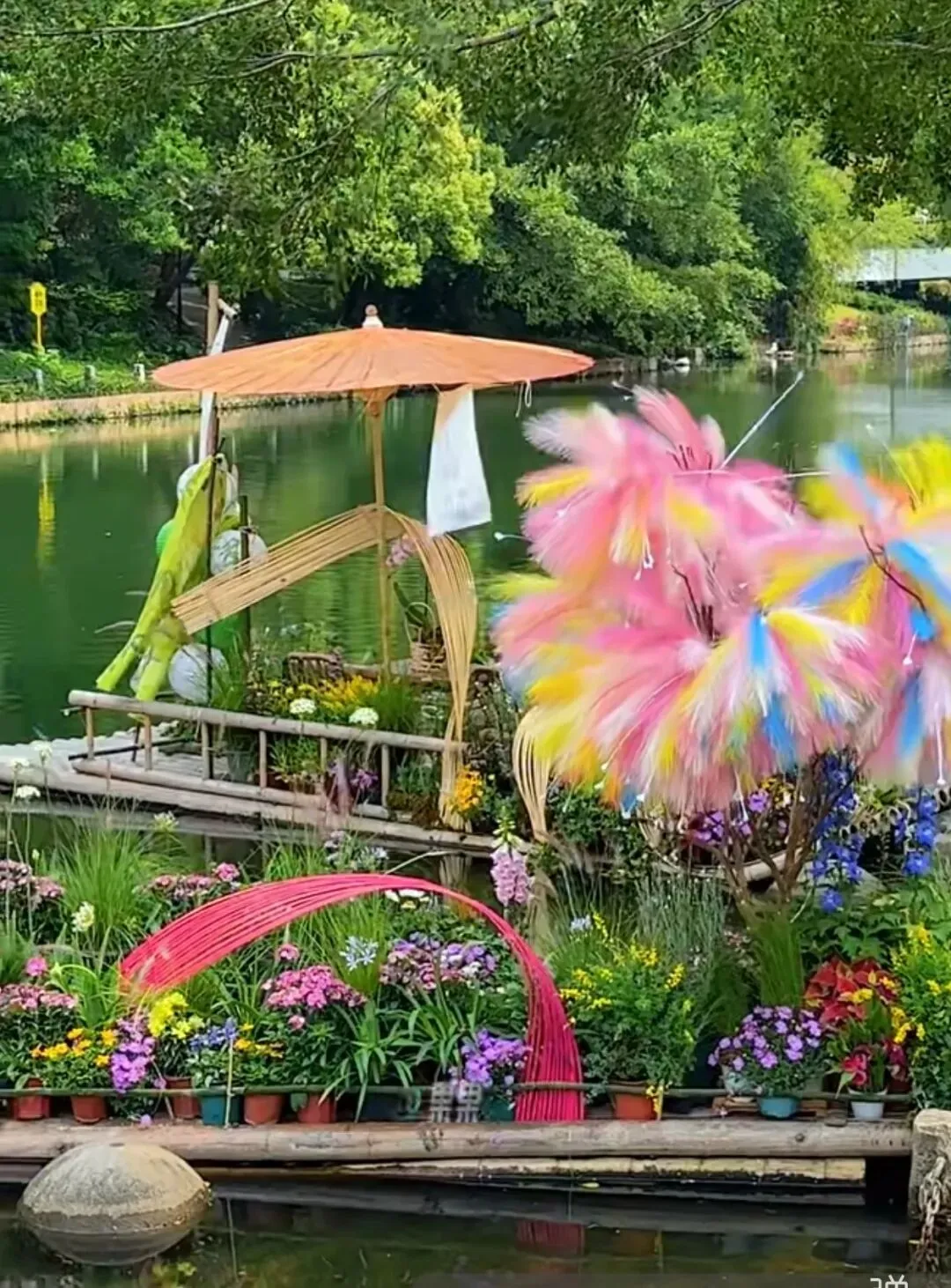 沿着花道往里走,像是闯进了被打翻的调色盘。深紫的杜鹃、浅碧的绣球、明黄的迎春,把展馆的檐角、临水的榭台都染成了春的模样。阳光穿过花树的缝隙,在地上织出细碎的金网,游人的裙摆掠过花丛,惊起一阵香风,连空气里都飘着笑声。