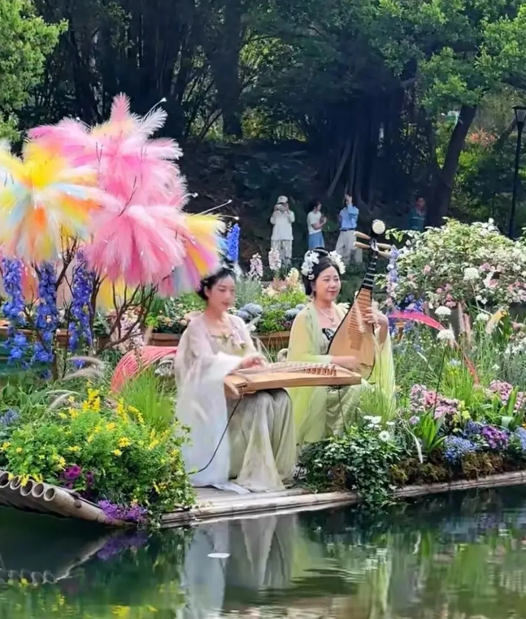 花展不止有花。街角的舞台上,岭南的粤剧正唱得婉转,水袖翻飞间,是老广刻在骨子里的浪漫;另一边的现代舞团,用肢体勾勒出湾区的天际线,传统与新潮在这里撞了个满怀。孩子们追着蝴蝶跑,老人在花架下拍着合影,有人举着相机定格花开的瞬间,有人干脆席地而坐,让花香漫过肩头。