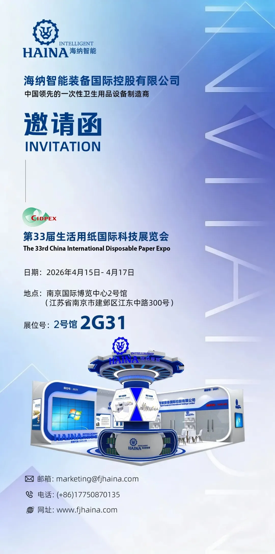作为全球生活用纸与卫生用品领域规模领先、行业影响力首屈一指的专业展会,本届盛会预计展出面积达10万平方米,汇聚900余家海内外优质参展商,吸引超过5万名专业观众到场参观采购,致力于打造集商贸洽谈、技术交流与品牌展示于一体的国际化高端平台。海纳智能将携一次性卫生用品自动化设备整体解决方案亮相展会!