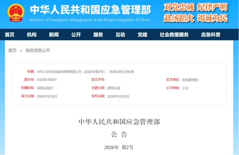 近日,应急管理部发布公告,公布3项行业标准,将于2026年9月30日正式实施。其中包括《化工和危险化学品生产经营企业重大生产安全事故隐患判定准则》(AQ 3067-2026)《化工企业设备检修作业安全规范》(AQ 3026-2026)《危险化学品重大危险源安全包保责任管理要求》((AQ 30722026))。