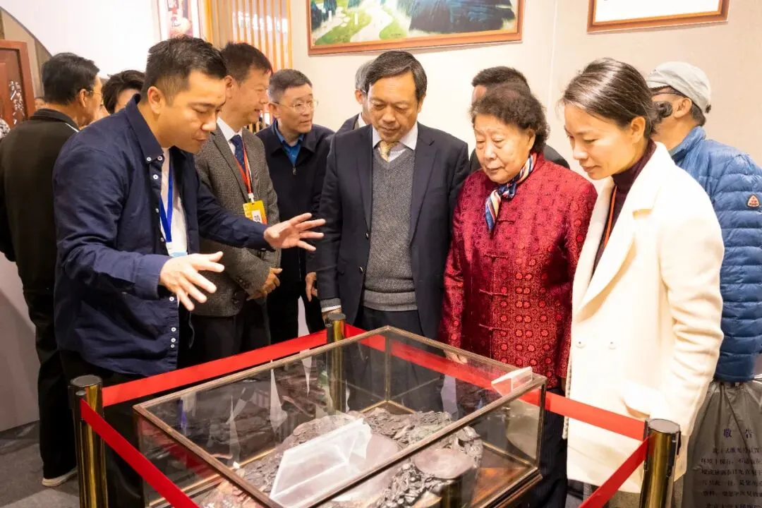 发言环节结束后,现场举行了 “肇庆府城命名九百周年纪念砚” 拓片赠送仪式,张浩龙书记作为代表,将这份承载着千年端州文化的珍贵拓片赠予中国文房四宝协会,由中国文房四宝协会米军秘书长上台接领。