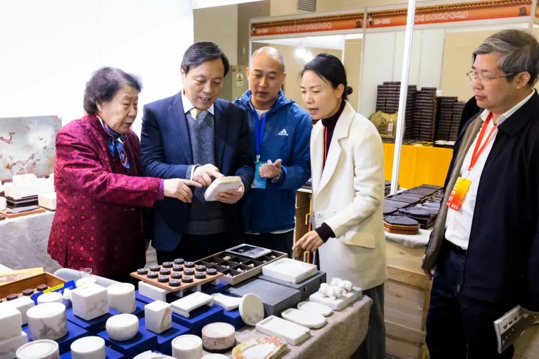开幕式后,北京展览馆内人潮涌动。博览会中,梁善会长亲临现场,于12号展馆端砚专区参观。与协会、行业相关负责人的陪同下走访了重点参展企业,详细了解行业发展现状与作品创新成果。