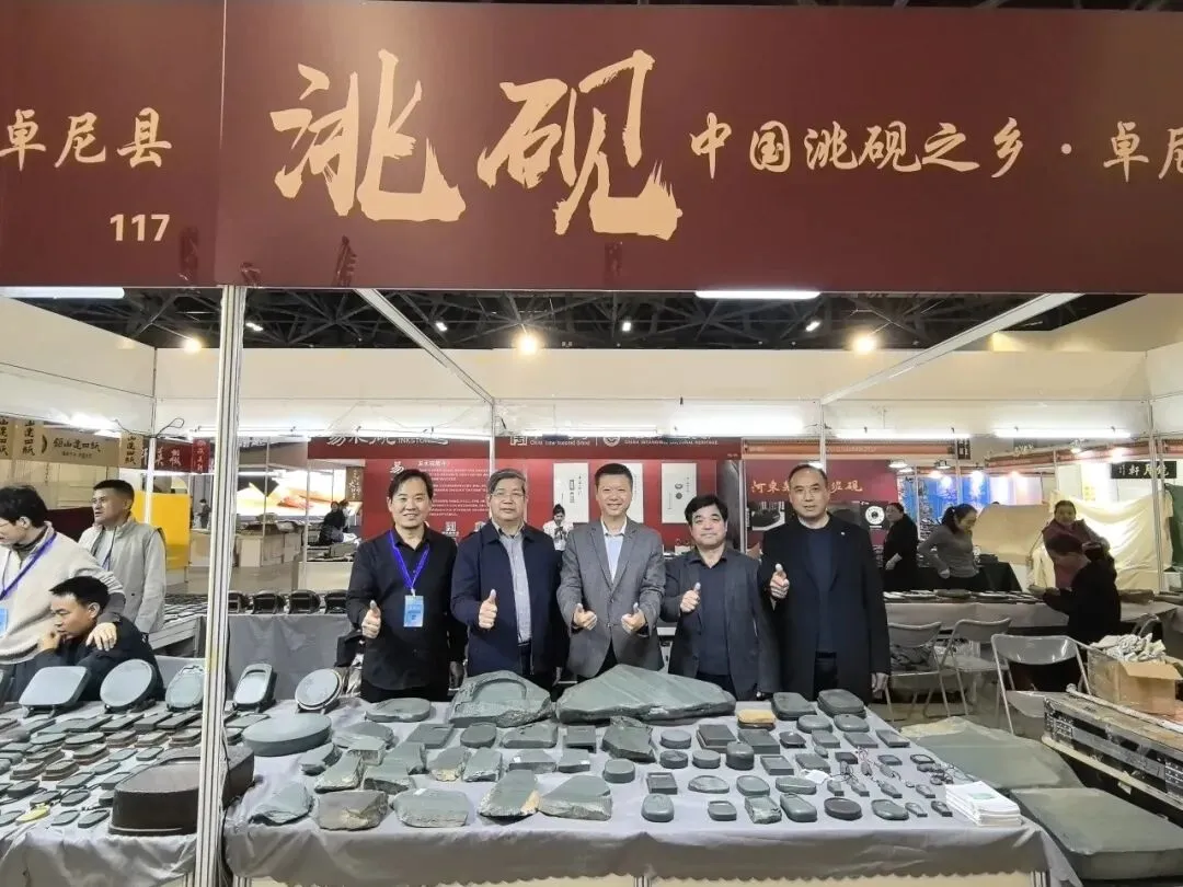 在砚台展区,梁善会长还重点参观了端砚、歙砚、洮河砚、澄泥砚四大名砚的参展商铺。每一方砚台背后,都凝聚着匠人的心血与智慧。