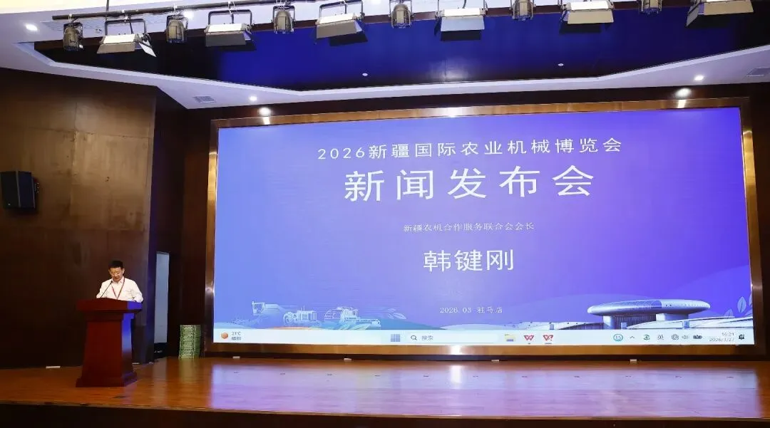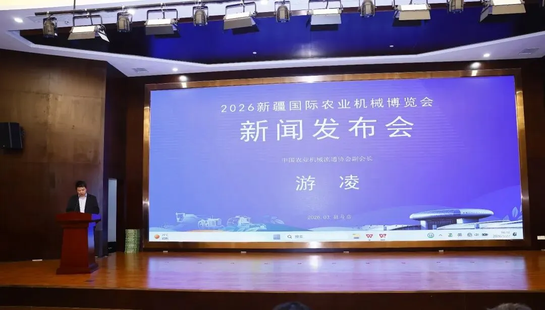 3月27日,2026全国农业机械展览会在河南驻马店开幕之际,2026新疆国际农业机械博览会新闻发布会同步举办。中国农业机械流通协会副会长游凌和新疆农机合作服务联合会会长韩键刚代表主办方详细介绍了展会筹备情况、核心亮点及平台功能,回应了媒体与企业关注的热点问题,全面展现新疆农机产业的活力与博览会的独特魅力。