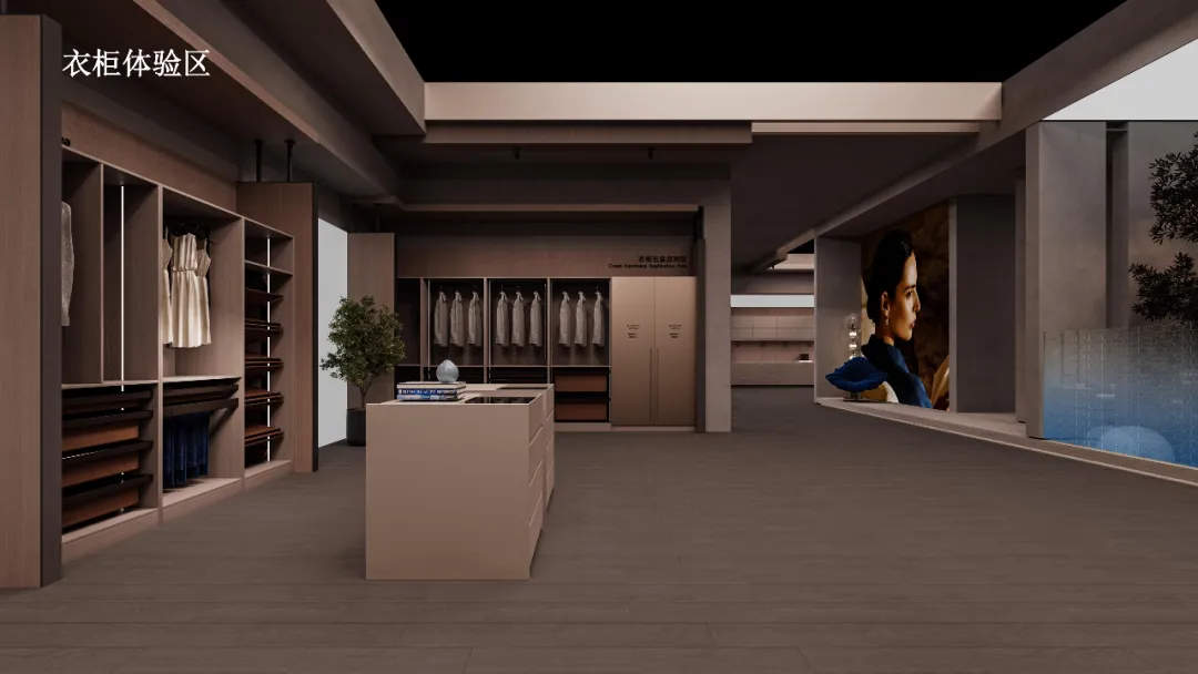毅点展览紧扣东泰科技、专业的品牌调性,以东泰蓝为主视觉,规划 8 大核心功能区,打造橱柜、衣柜、卫浴等十余类真实家居场景体验区,将「国际一线・天生耐用」的品牌理念完美落地,让东泰五金的硬核实力在场景中全面展现。