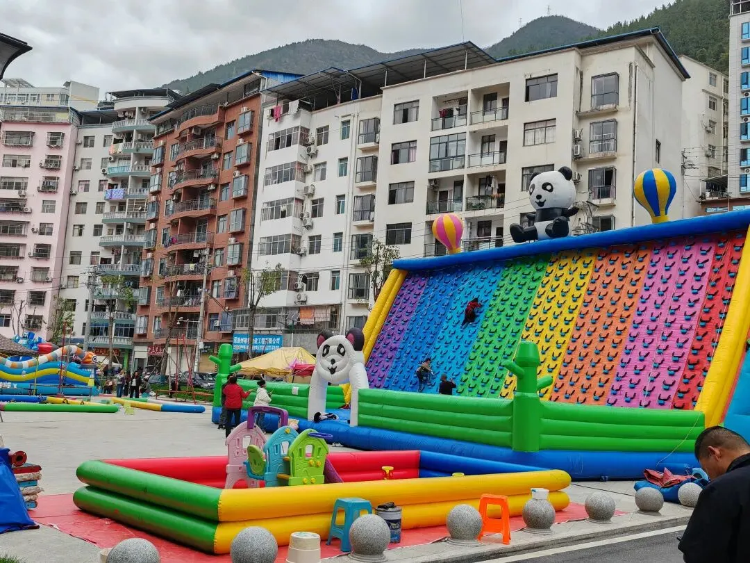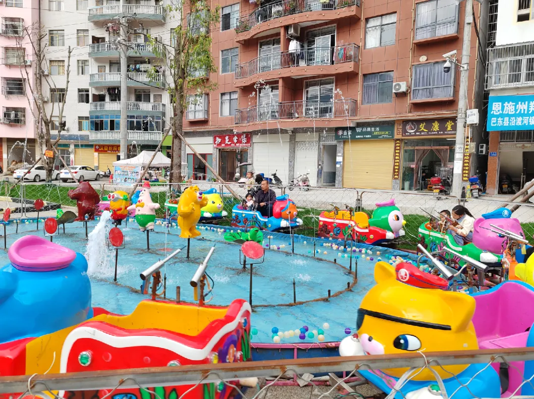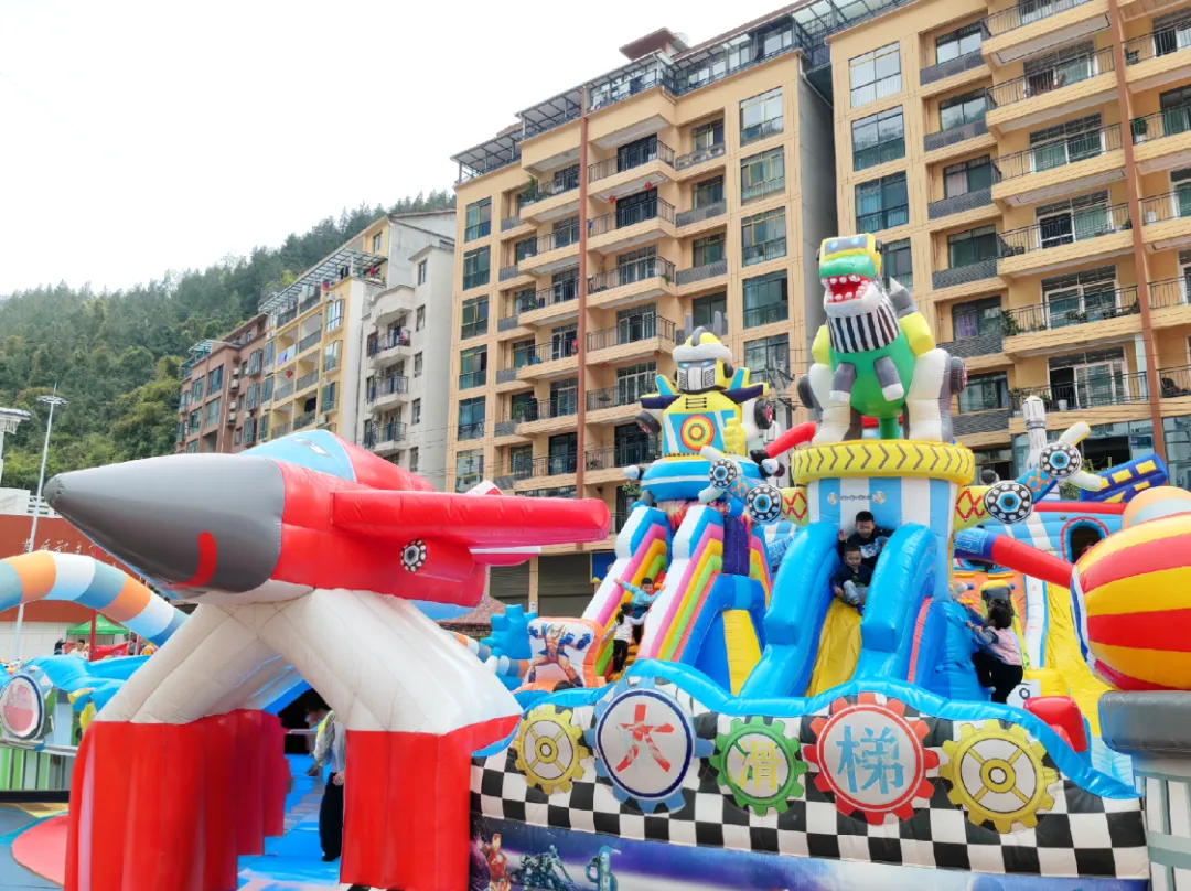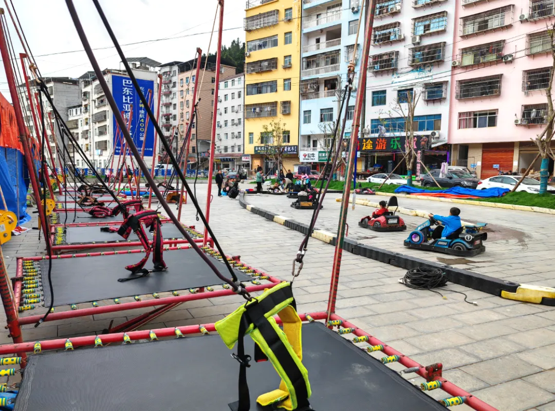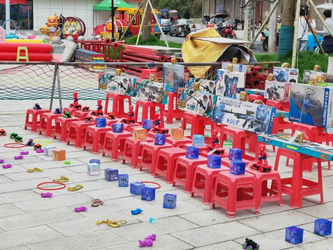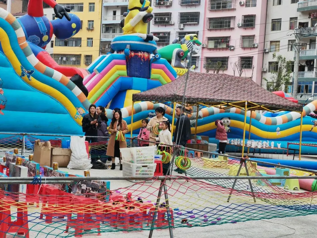 充气城堡、过山车、套圈游戏,家长与孩子一起嬉戏玩耍,定格春日温馨瞬间