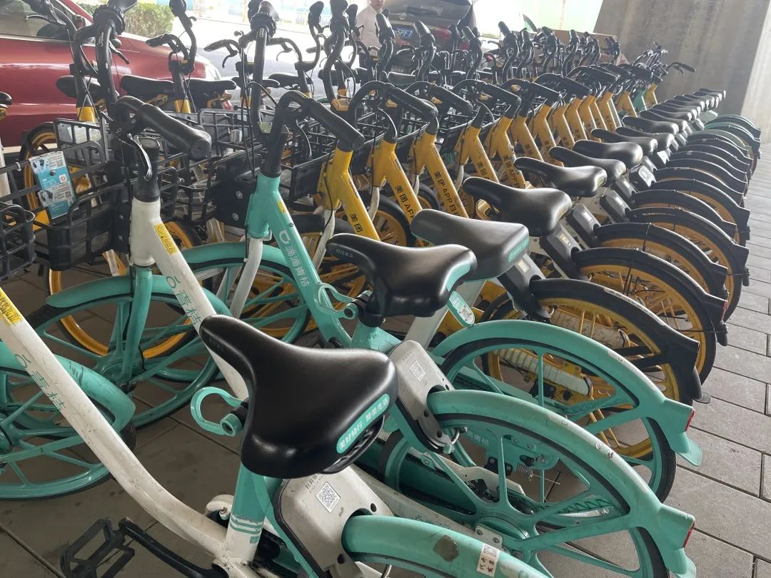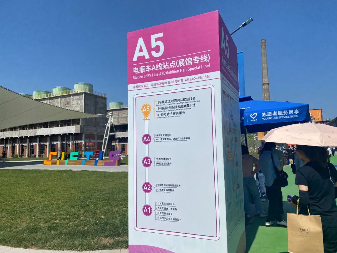 服贸会期间,首钢园开放共享单车服务,在首钢大桥下设置了临时存车、取车点。