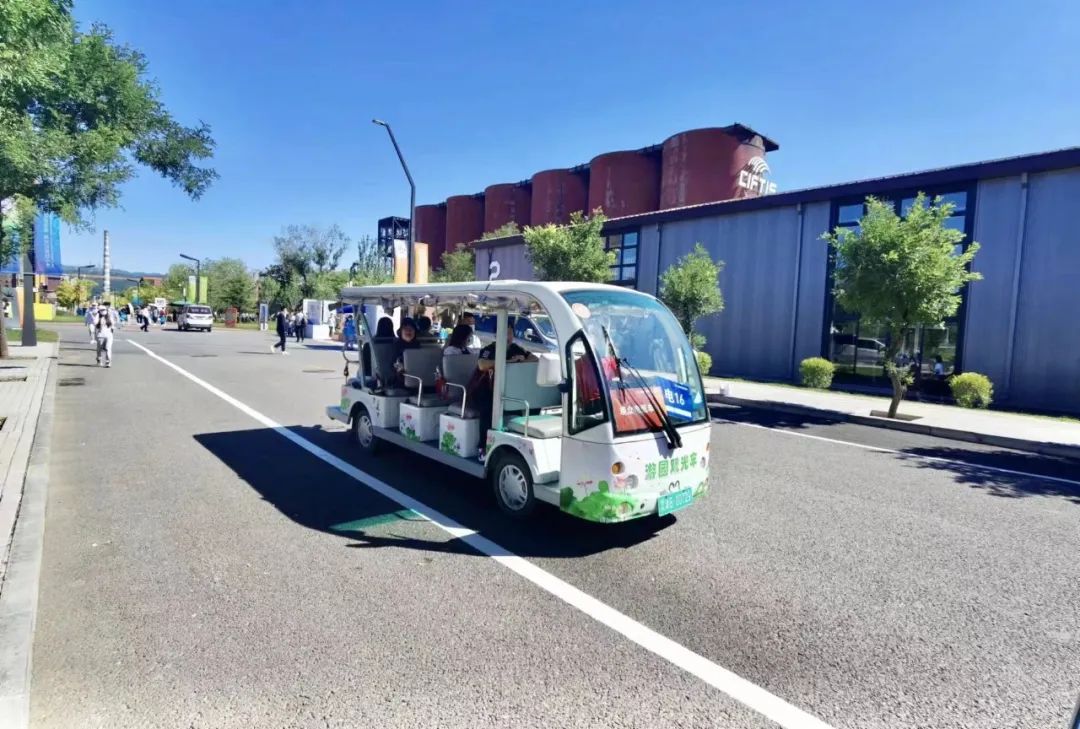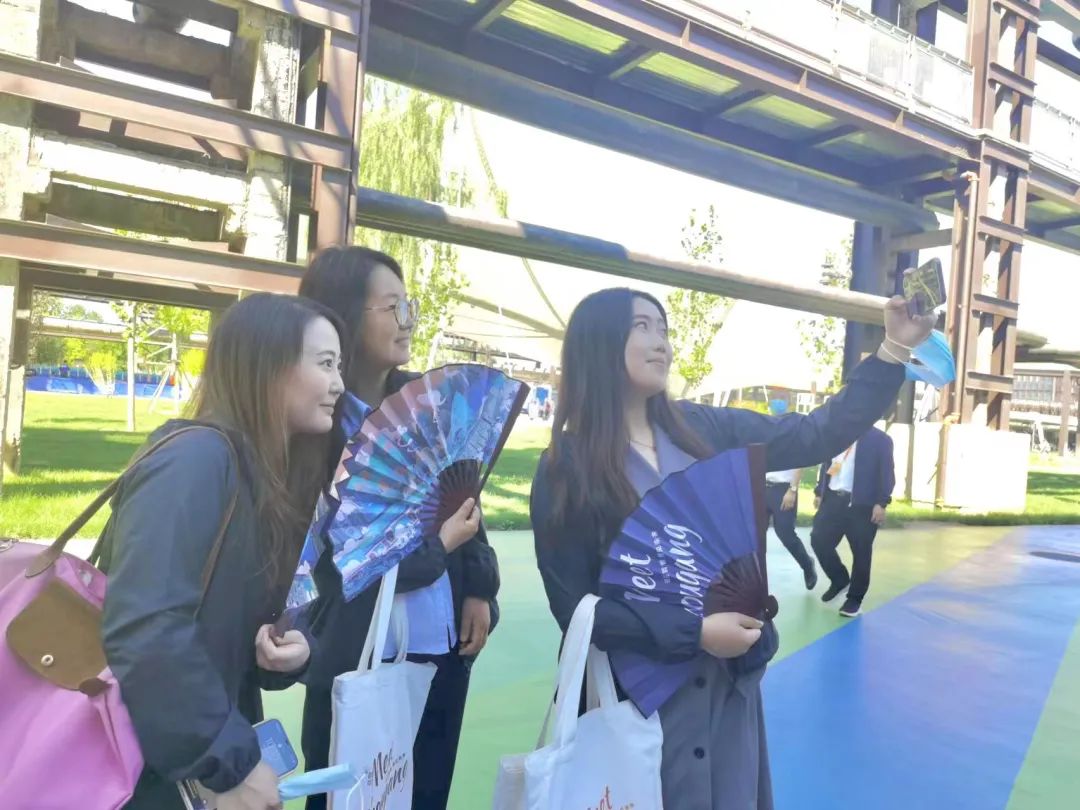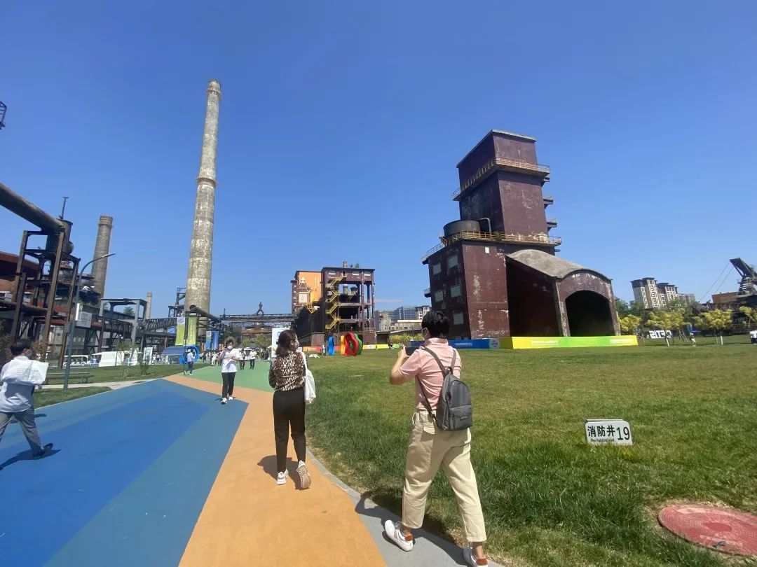 园区各具特色工业景观吸引着游客的目光,纷纷打卡、拍照留念,记录这次特别的服贸之旅。