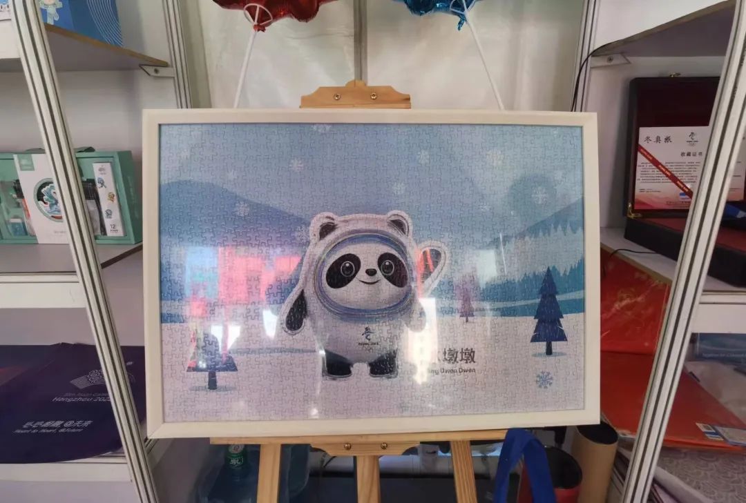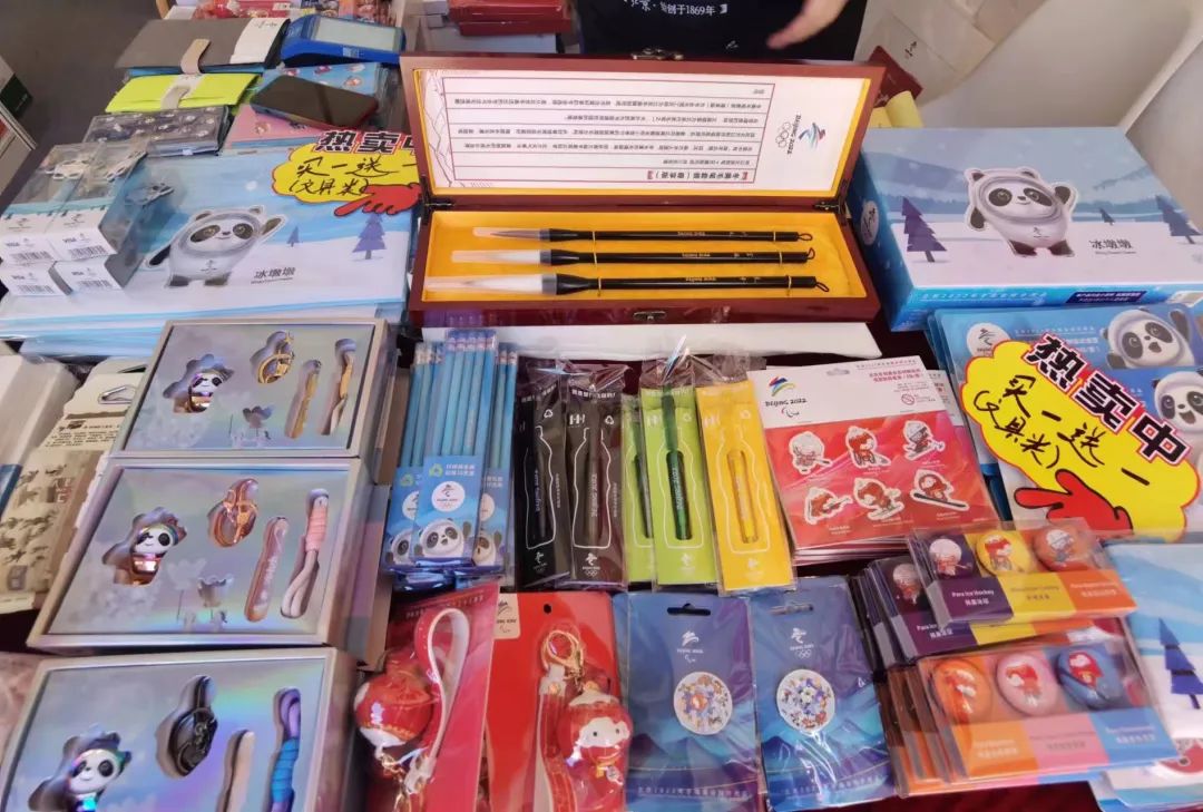 馆内太空版的冰墩墩和雪容融以及北京2022冬奥会特许商品中明星产品亮相。各式各样、各种材质的冰墩墩和雪容融依旧受到大家的喜爱。