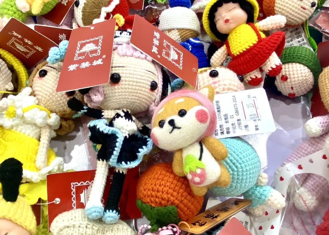 一旁的展示架上,小石看到满满当当的手工娃娃, 这些手工编织的娃娃形态各异,有着不同的造型,每一个都是可爱这个词的化身!