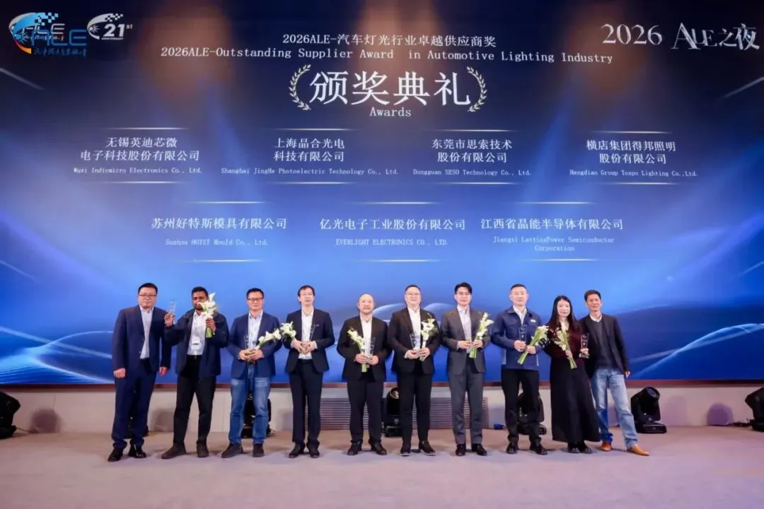 公司凭借在车规级LED 领域的突出贡献,荣膺2026ALE-汽车灯光行业卓越供应商奖,再度彰显行业的权威认可。