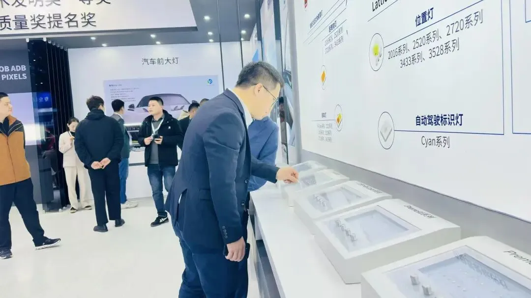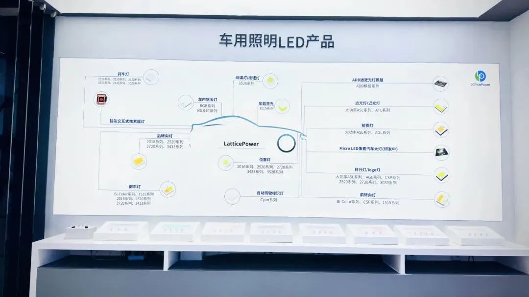 此外,晶能光电展台还展出大功率远近光灯、刹车灯、转向灯、车载背光等全系列车用 LED 器件,以及 40700 像素Micro LED 光源,覆盖从常规照明到高端像素大灯的全场景需求,为客户提供一站式光源选型与方案支持。