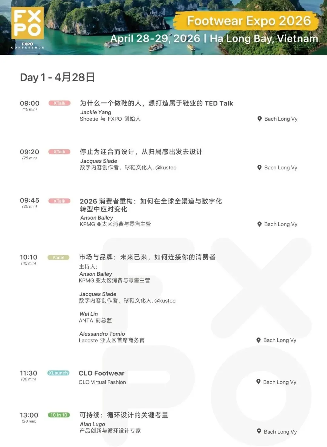 4月28日至29日,我们将在越南下龙湾迎来来自品牌、材料、制造、设计与各类创新解决方案的行业参与者。随着活动临近,FXPO 现场议程也在逐步明晰。