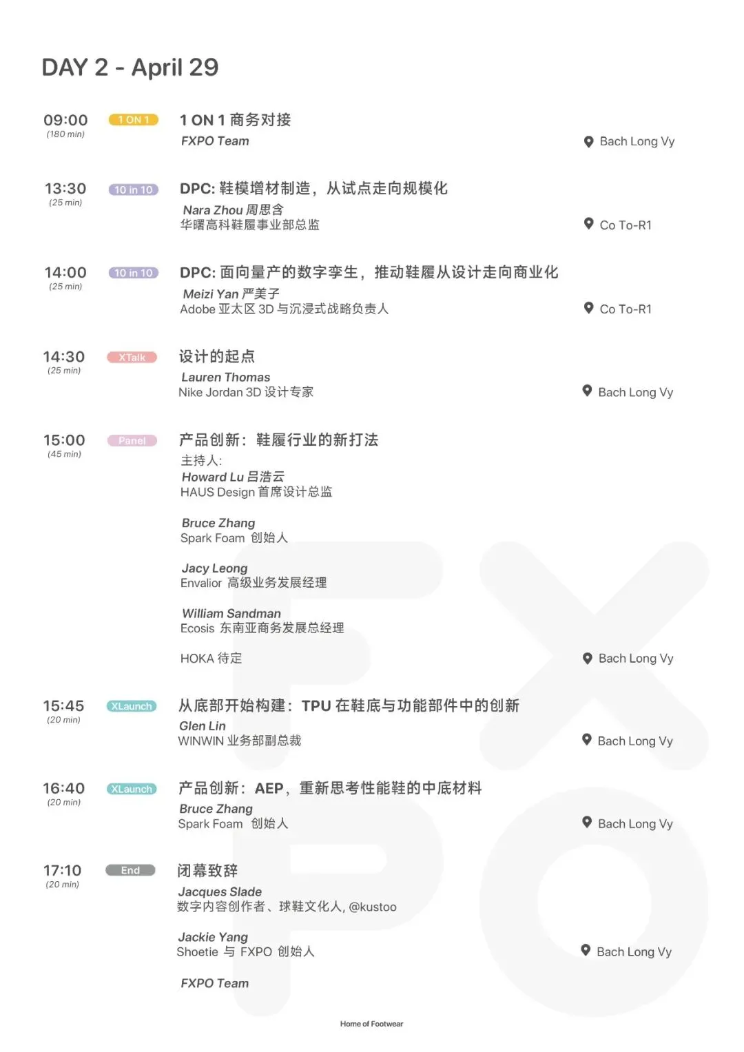 除了展区交流与面对面连接,本届 FXPO 还将带来 XTalk、1 ON 1 商务对接、XPitch、XLaunch 等多个重点环节。围绕产品创新、可持续、数字化、上市策略与制造等方向,更多现场内容也将陆续公布!